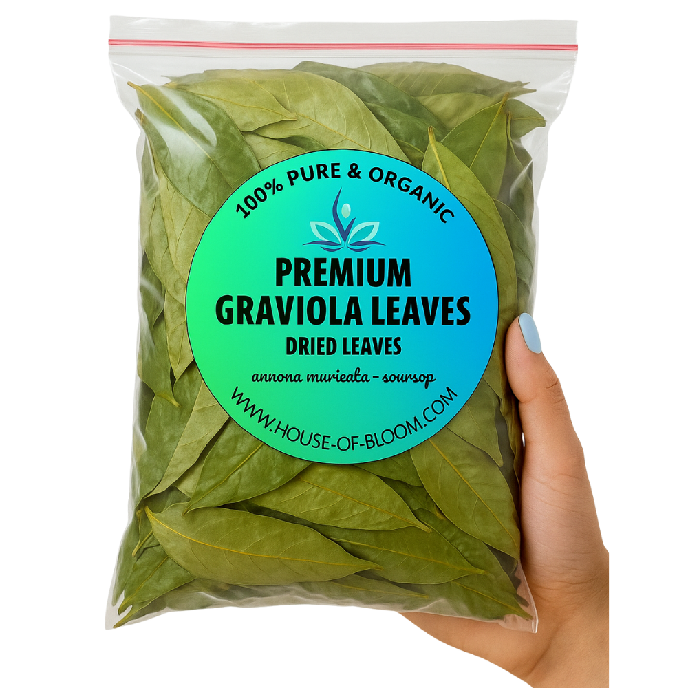 ? Welcome to House of Bloom. You are viewing our Wholesale Bulk Pack of 1000 Premium Dried Soursop Leaves (Annona Muricata), also known globally as Graviola, Guanabana, or Guyabano.