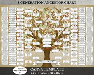Personalizing your family tree template is easy and free with Canva. The background design is fixed and cannot be edited, but with a drag-and-drop interface, you can quickly add and remove photo frames and edit names. With this unique hand designed template and Canva, you have the tools to create a stunning and customized family tree that truly captures your family's history. And all this at a fraction of the cost of a custom designed tree!