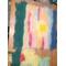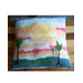 This pillow is made from wool that I get from my pet sheep. I wash the wool, dye the wool, and then card the wool into thick batts. I usually dye the wool with the project in mind. This pillow was inspired by the beautiful sunsets that we have here in Wyoming. Wet felting produces a think strong farbic. Due to the process the fabric has some variation in thinkness and texture.