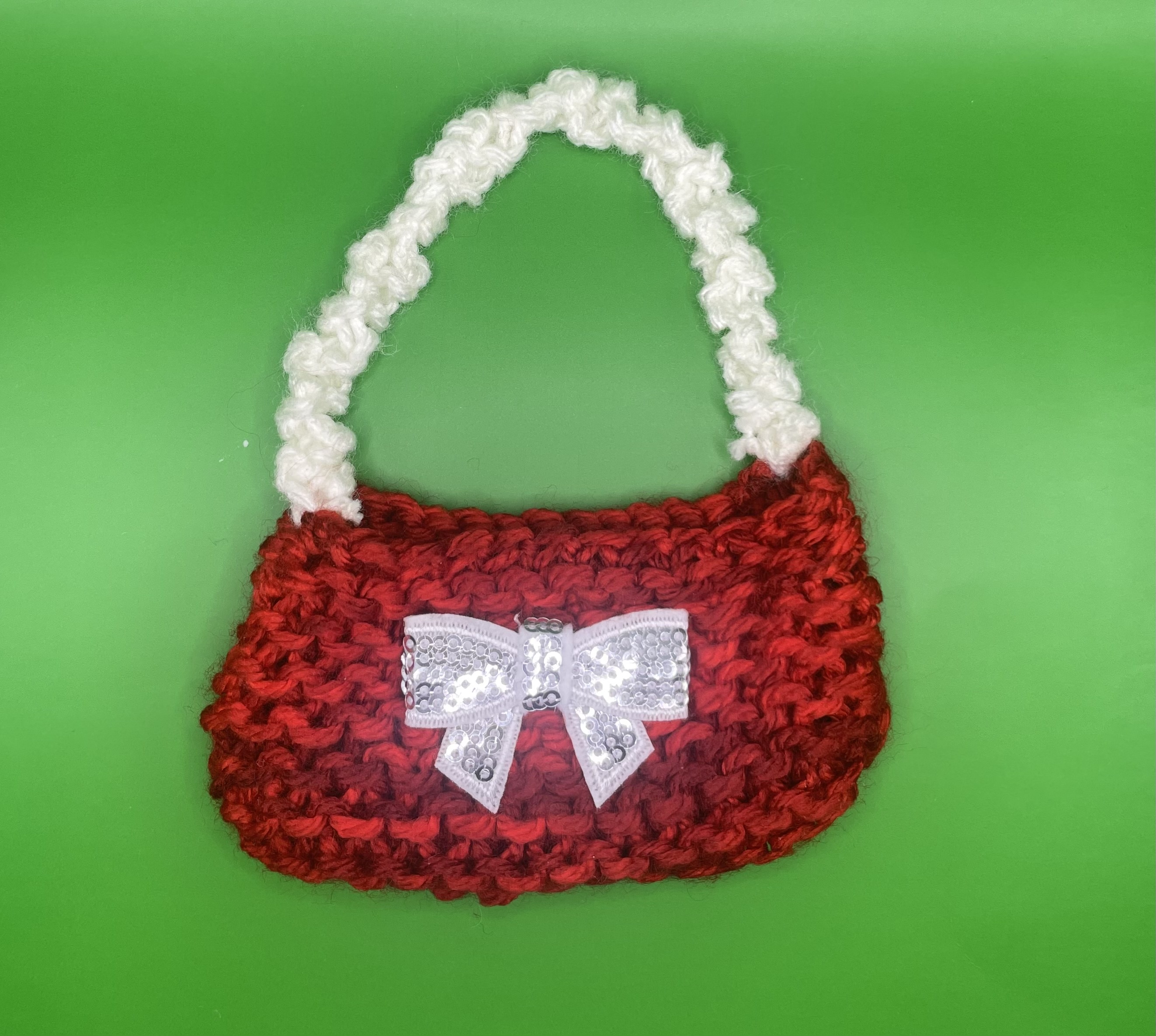 Every doll deserves a touch of holiday sparkle!❣️This hand-crafted knitted purse fits 18-inch dolls and adds a festive flair to any outfit. Sized at 2”x4.5”. Perfect for play, display, or gifting — this little handbag will make your doll shine this Christmas season. Slip a gift card inside for added smiles. Enjoy❣️