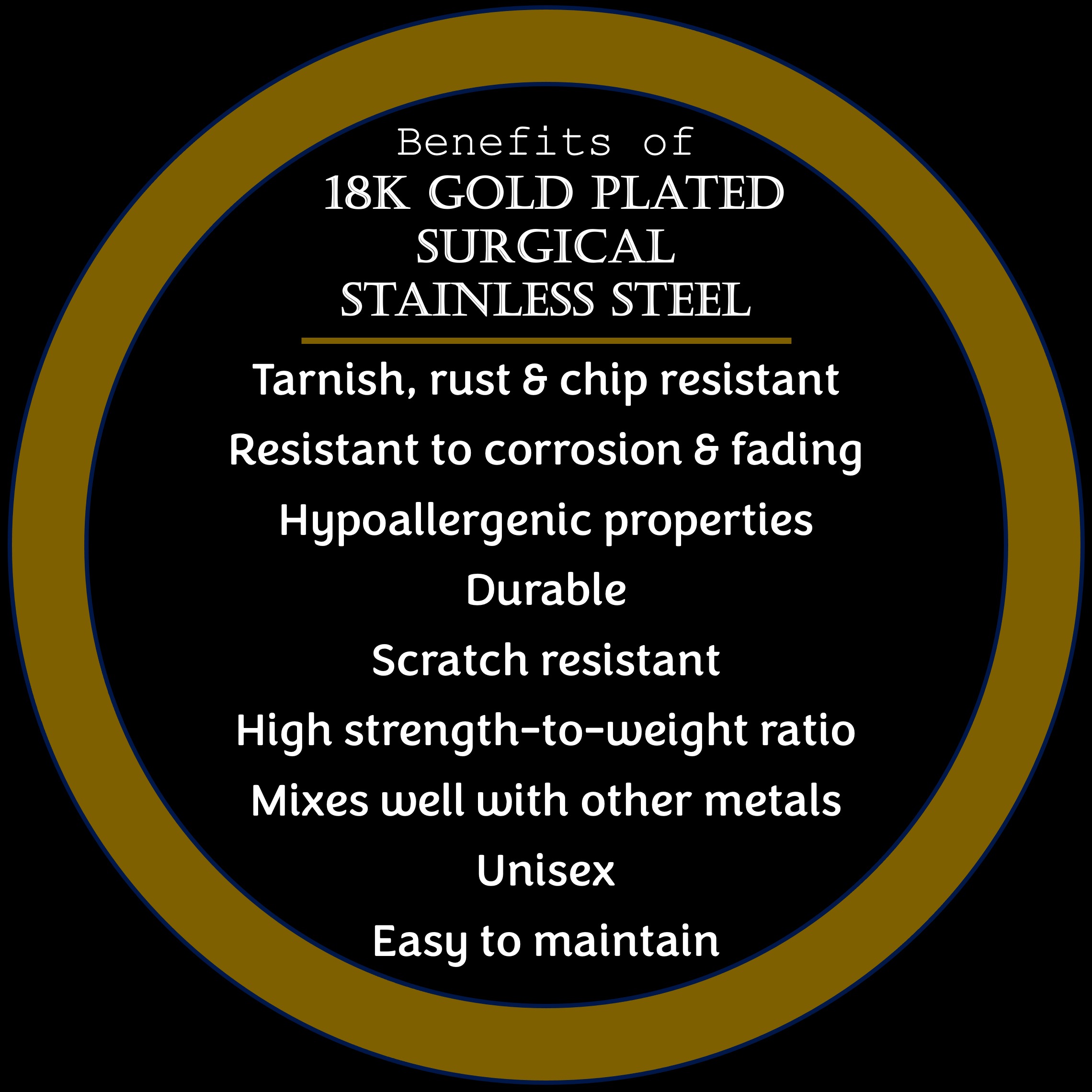 Metal: 18k Gold Plated Surgical Stainless Steel