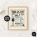 I created this in Adobe Illustrator and designed the typography. I used an old antique paper background to give it a vintage newspaper look. What makes this design truly special is the fascinating content—the facts and details are thoughtfully researched. It's made to be a fun gift that is easy to print. Perfect for a last minute gift solution!