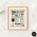 I created this in Adobe Illustrator and designed the typography. I used an old antique paper background to give it a vintage newspaper look. What makes this design truly special is the fascinating content—the facts and details are thoughtfully researched. It's made to be a fun gift that is easy to print. Perfect for a last minute gift solution!