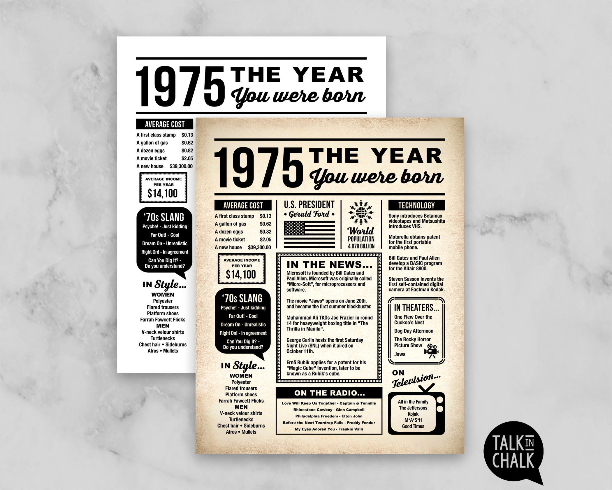 1975 The Year You Were Born Printable Newspaper Poster for 50th Birthday - Last Minute Gift