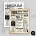 Take a trip down memory lane with this "1986 Year You Were Born" printable newspaper sign! Packed with fun facts, pop culture highlights, and key historical moments, this retro-inspired design makes the perfect conversation starter for a 40th birthday celebration. Includes two versions, a newspaper background and a black and white version.