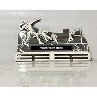 Elevate your football memorabilia with our 3-Layer Football Plaque. Personalized with your name, number, position, and school color, this meticulously crafted plaque is a stunning showcase for your achievements on the field. Whether it's for your home, office, or as a cherished gift, this plaque captures your football legacy in style. Order yours now to display your passion for the game with pride. Approximately 17.5"x10.5".