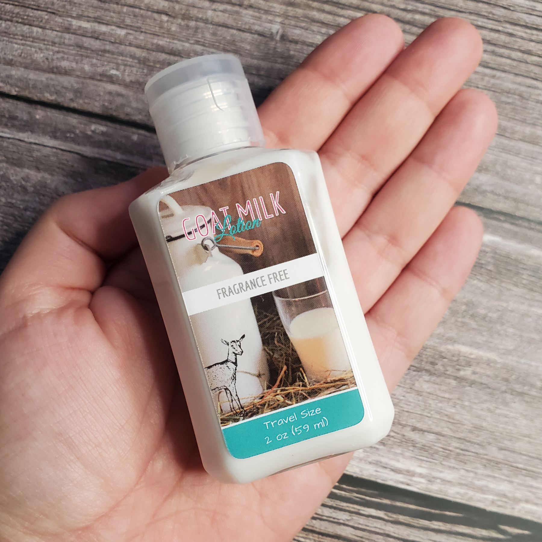 All the benefits from our skin loving Goat Milk Lotion, in a convenient and easy to carry size. Our Goats Milk Lotion will drench thirsty, dry skin with instant hydration. Goat milk contains high amounts of alpha hydroxy acid, vitamins A, B6, B12, C, E and minerals to nourish & regenerate skin. Other nourishing additives & organic extracts include Aloe Vera, Oat Bran Extract, Orange Peel Extract, Rice Bran Extract, Rosemary Leaf Extract and Sunflower Extract. Contains Caprylic/Capric Triglycerides derived from Coconuts to create a skin barrier to retain moisture deep within the skins surface. It has a thinner consistency which allows it to be absorbed instantly & deeply hydrate every layer. Perfect for those who need quick relief from dry skin without that greasy feeling!