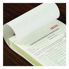I will custom print your name and other information and add it to the form then I print and then put a perf at the top and bind it with a wrap around cover.