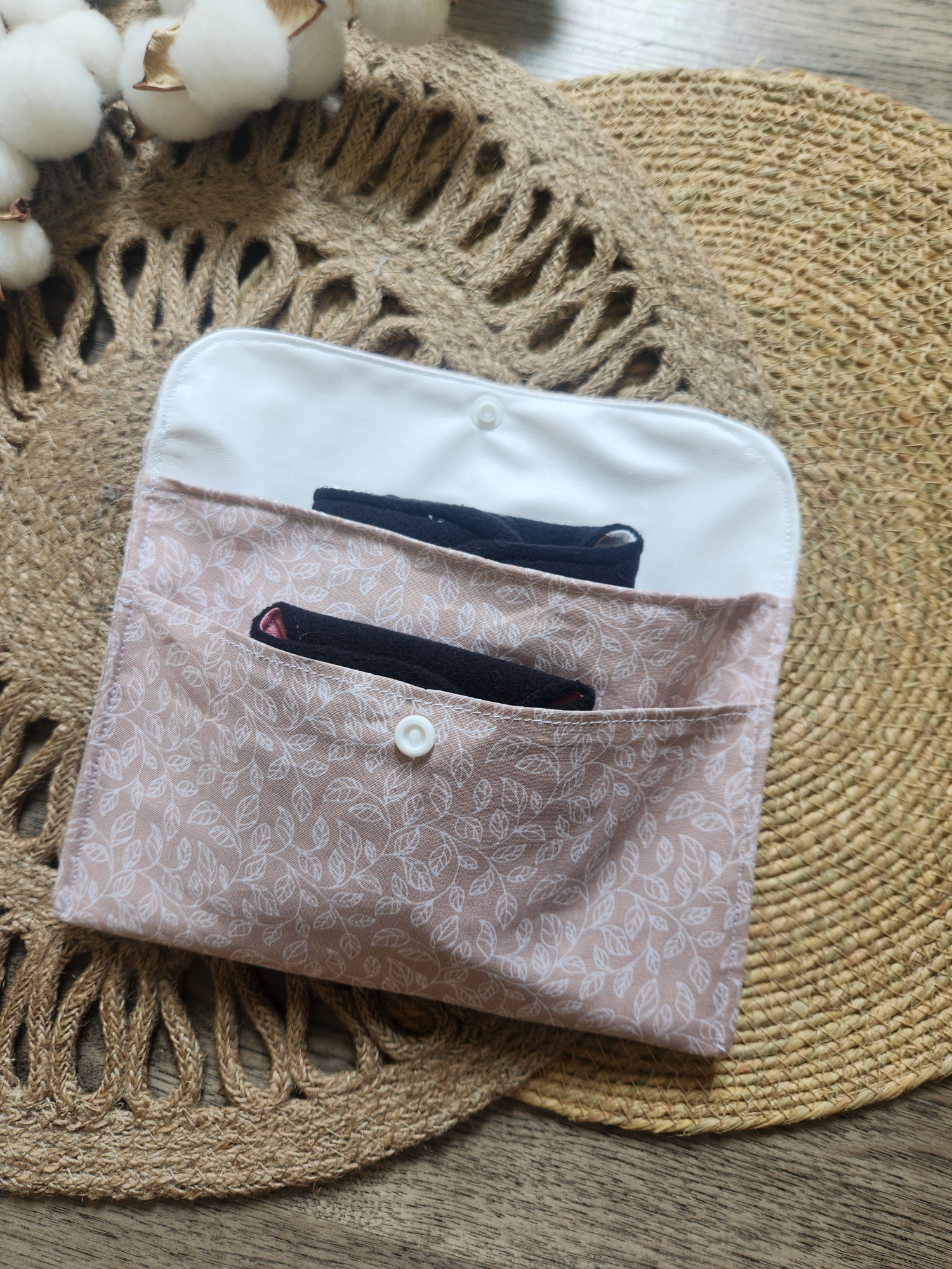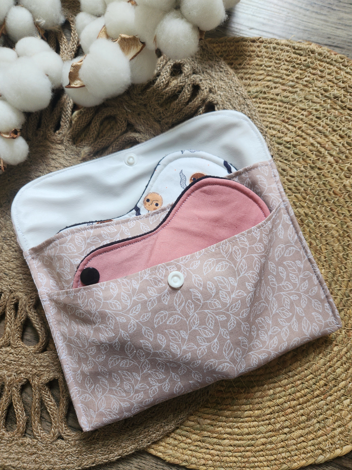 Each wet bag is crafted with a waterproof PUL lining pocket for soiled pads and a separate pocket for clean pads, featuring an exterior cotton fabric. Our bags have space to hold 2-3 pads, making them an ideal choice for those who value organization and convenience.