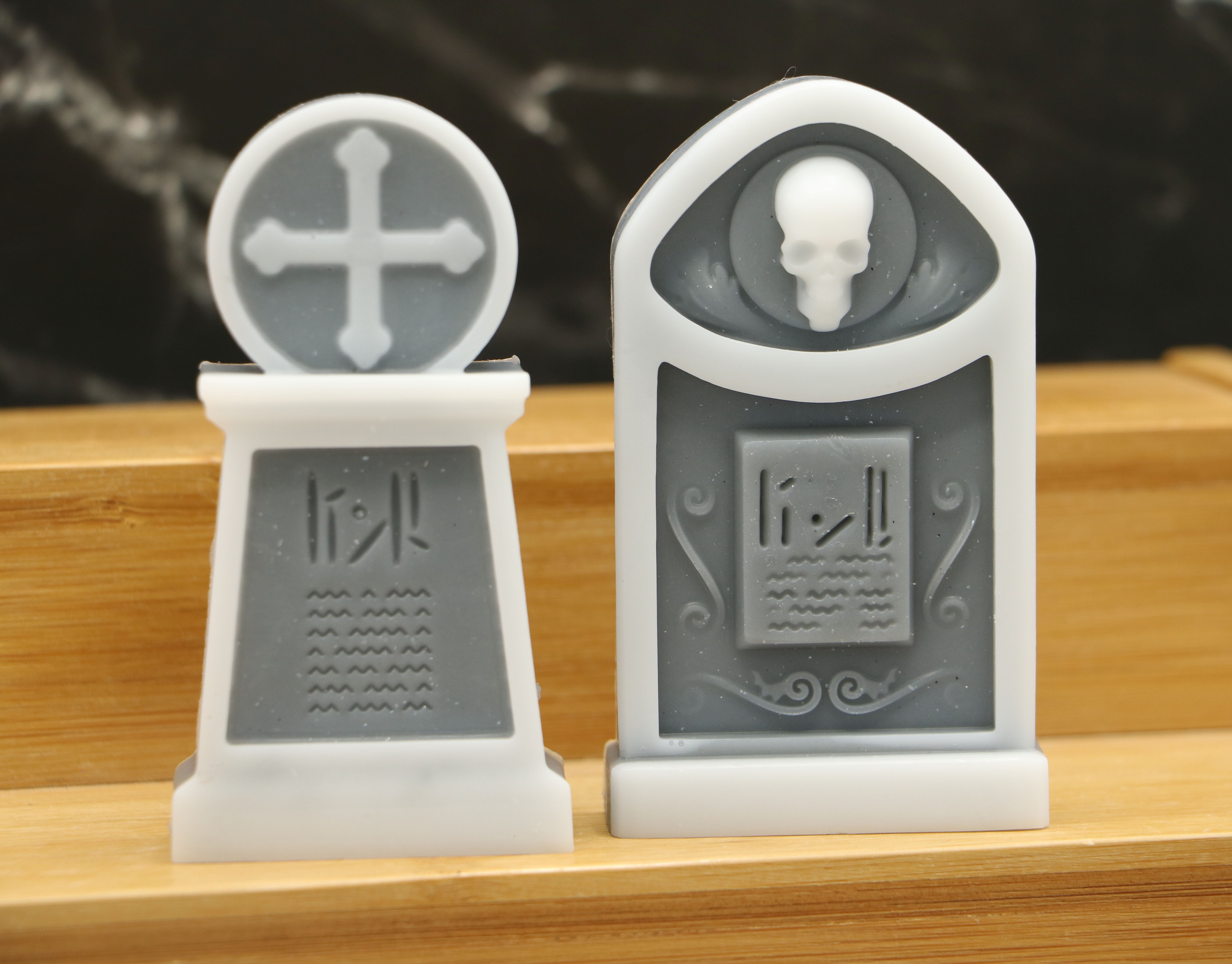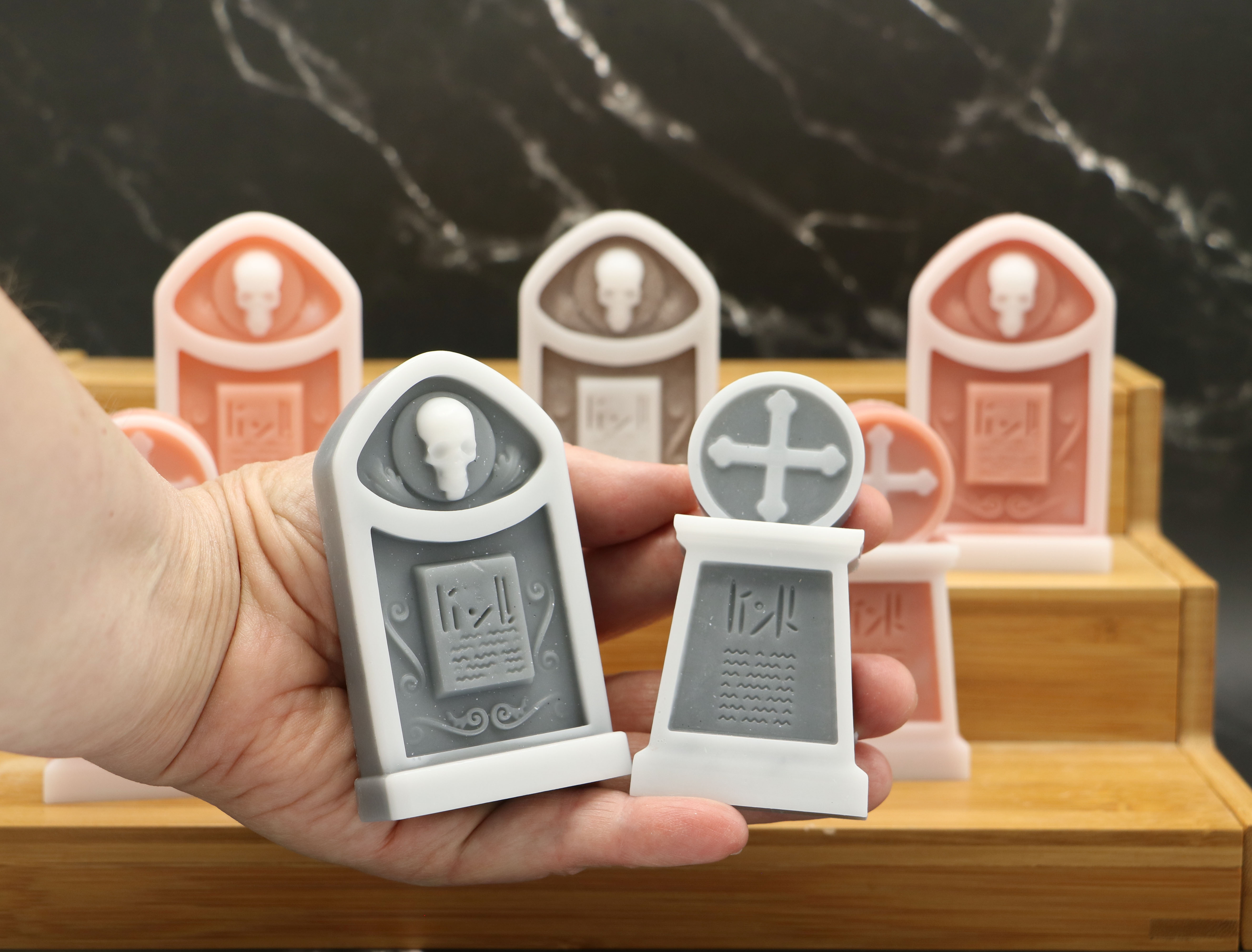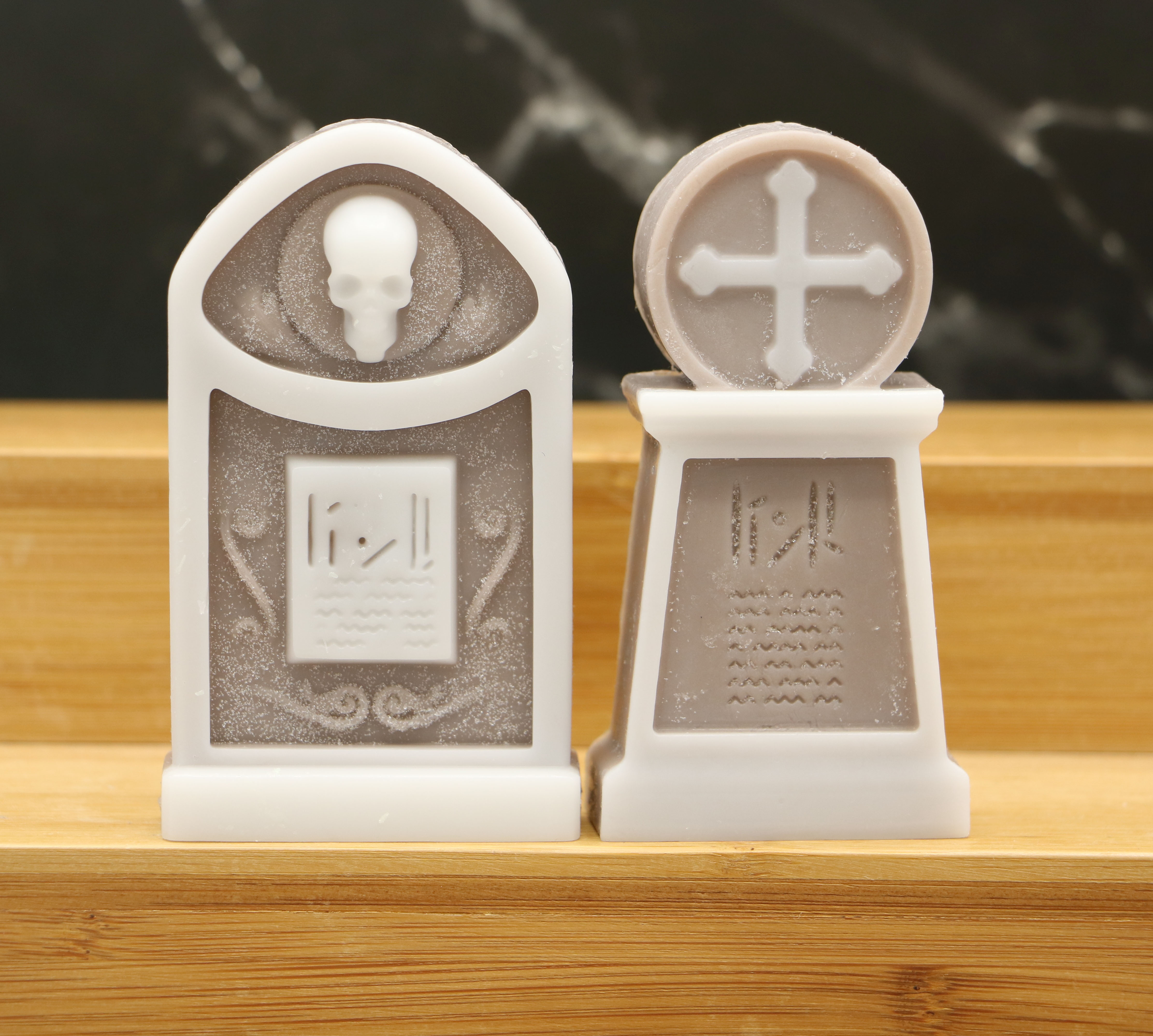 Set of 2 Tombstone Soaps for Halloween Gifts or Party Favors. Tombstone Soaps with details enhanced in White Soap. Choose your soap color, scent & packaging option. Add a complimentary Gift Tag with your personal message if desired!