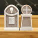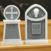 Tombstone with Cross: Measures 3.5" H x 1.75" W x 0.75" thick. Weight-2 oz