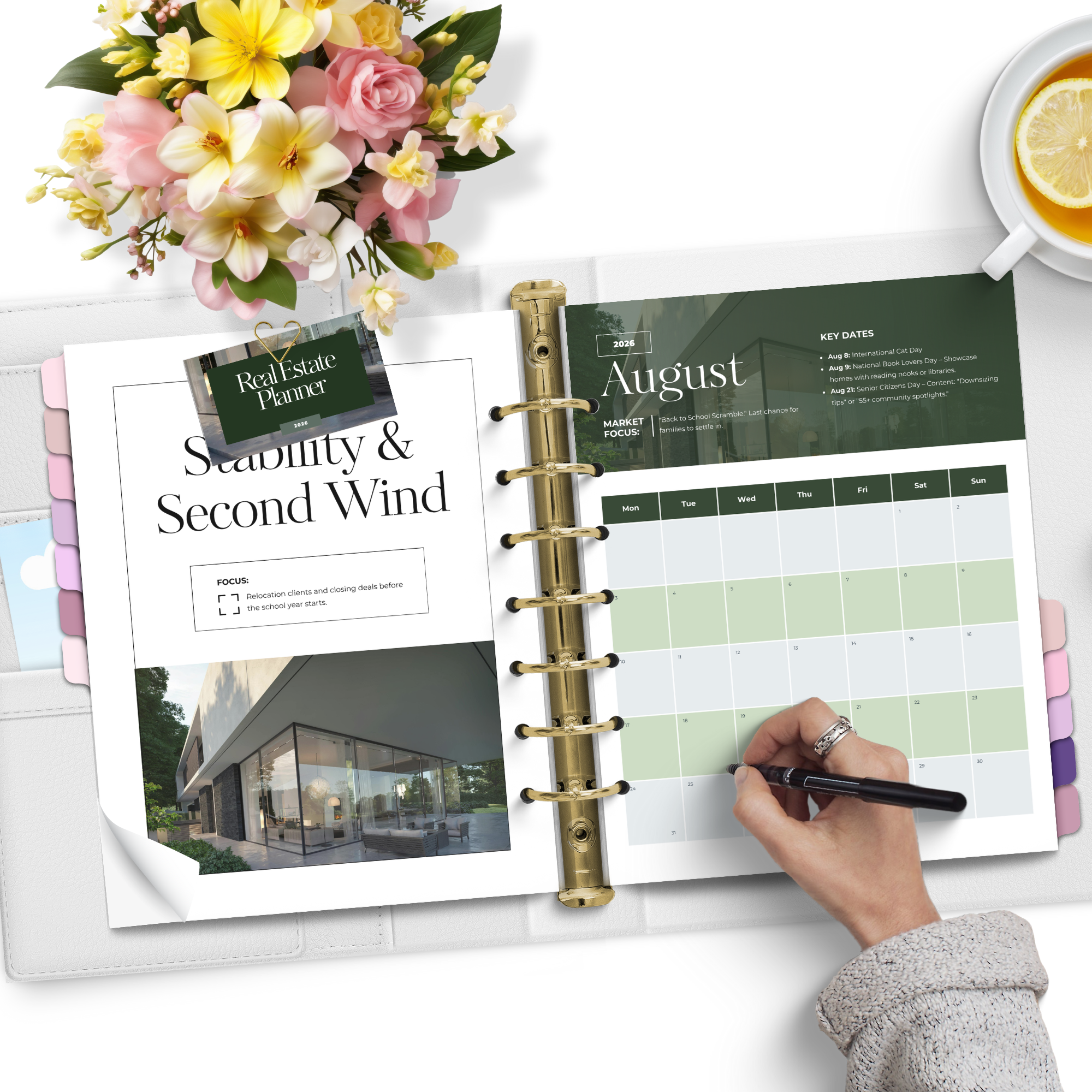 This 2026 Real Estate Planner is a printable PDF designed for real estate agents who want more than a basic calendar. It combines year-long planning, monthly market focus, and built-in content prompts to help you stay consistent, visible, and organized throughout every season of the market.