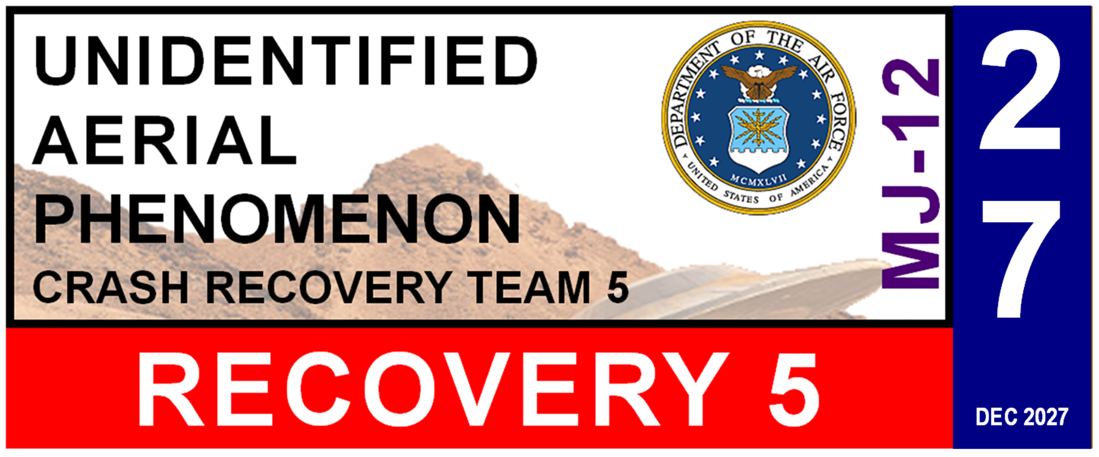 Whenever a UAP (UFO) crashes the government sends out designated recovery teams. This fantasy decal will allow you access (not!) to the next UFO crash. The decal dimensions are approx. 5-1/2" x 2-1/4" and is vinyl.