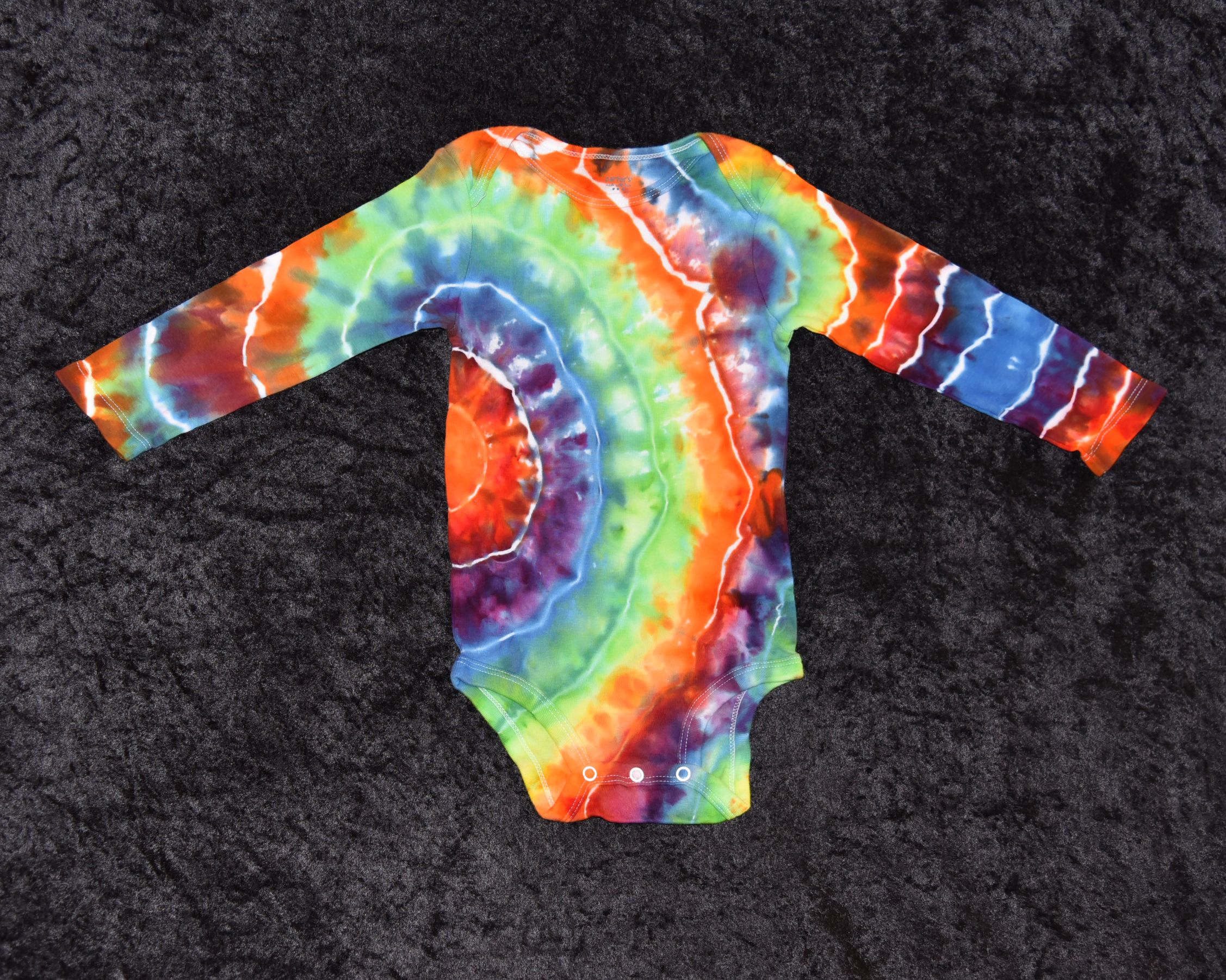 After the dye process my items are thoroughly rinsed by hand and are then put through at least two full HOT wash cycles to remove excess dye. Please keep in mind that although my items have been thoroughly laundered you will still need to wash with LIKE colors. Upon receiving your new tie dye, be sure to launder the item before wearing, especially those meant for babies, with your usual detergent except those noted below. I have not used fabric softeners or dryer sheets after laundering, however, the professional textile detergent that I use leaves a slight floral scent.