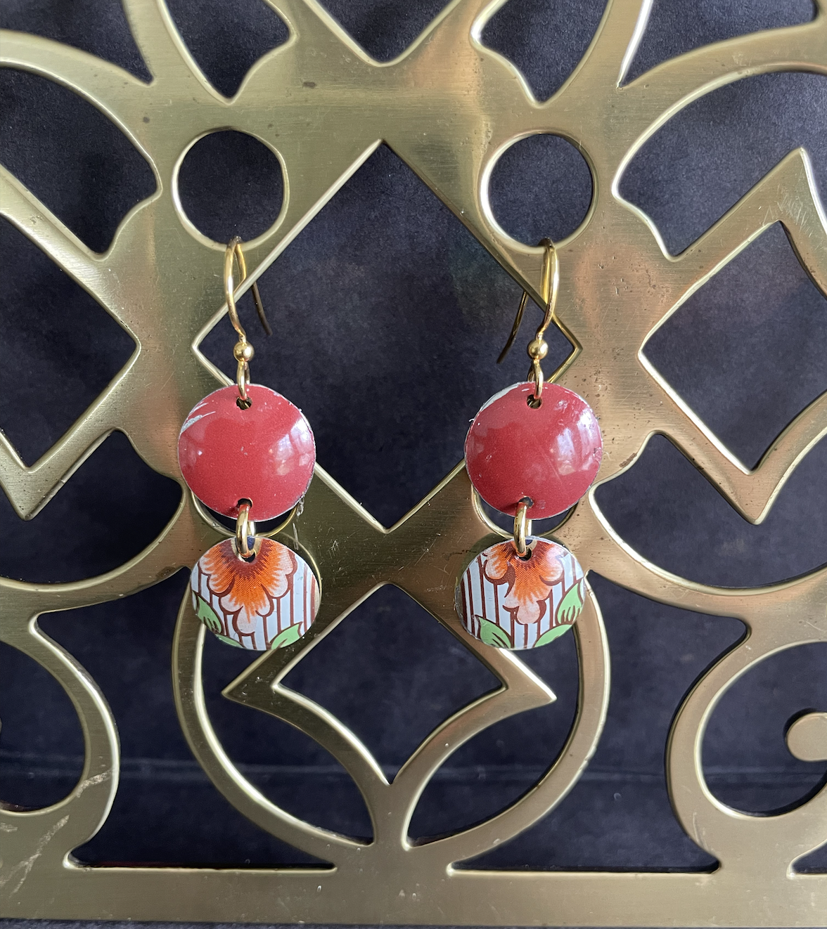 • Care Instructions: As with any jewelry, the easier you treat it, the longer it will last. The double-sided pendants are not water proof. The tin earrings are water proof, although some of the older tins may rust as they have a higher iron content (I think this patina only adds to their charm).
