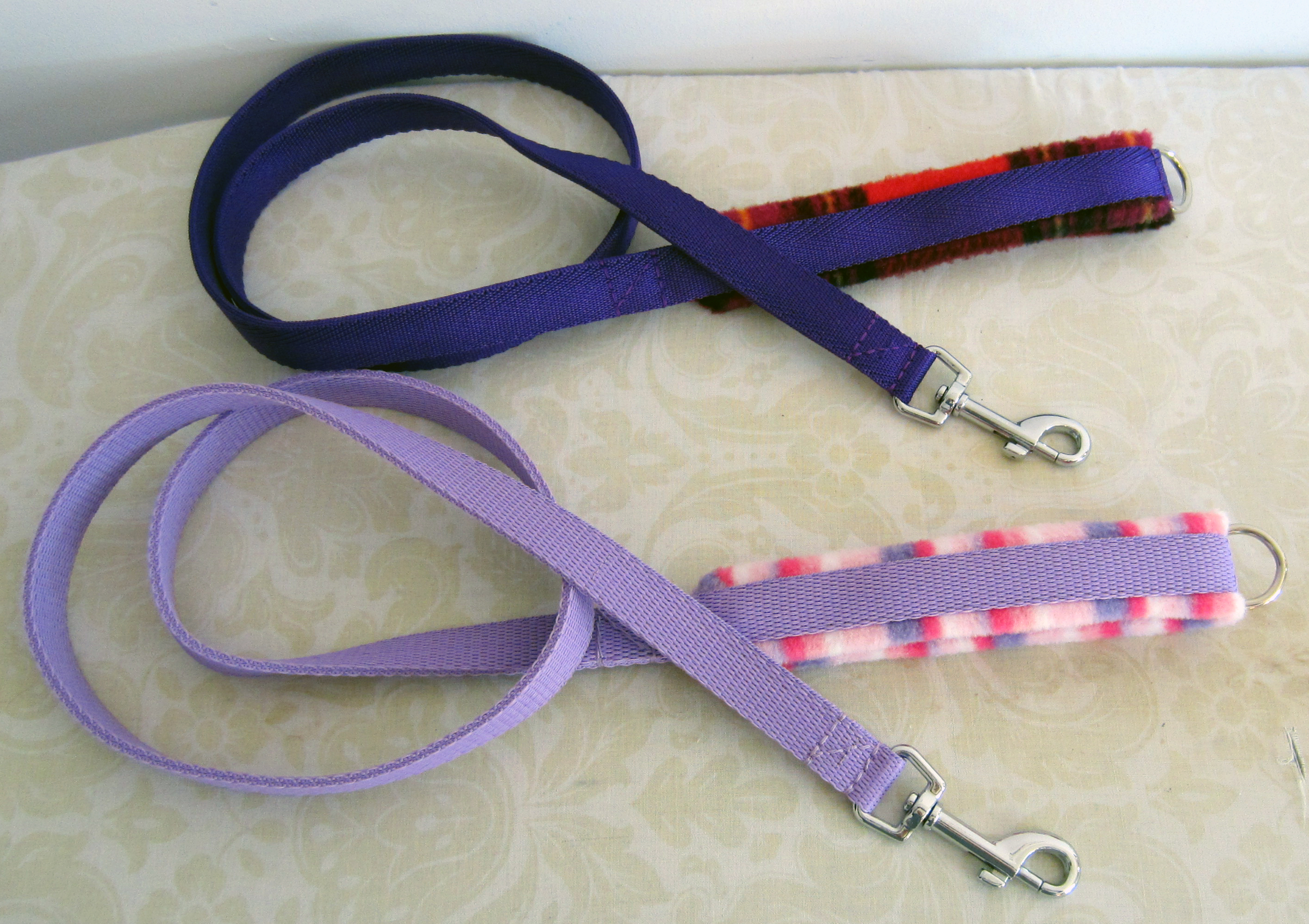 - to match the padded collars in my other listings. Sturdy webbing dog leash with a soft and comfy handle for you..... made from double-thickness 3/4" (20mm) width webbing, with a welded D ring at the apex of the handle, a swivel mounted trigger clip and a fleece padded handle. Approx. 59" 1.5m) long including the clip.