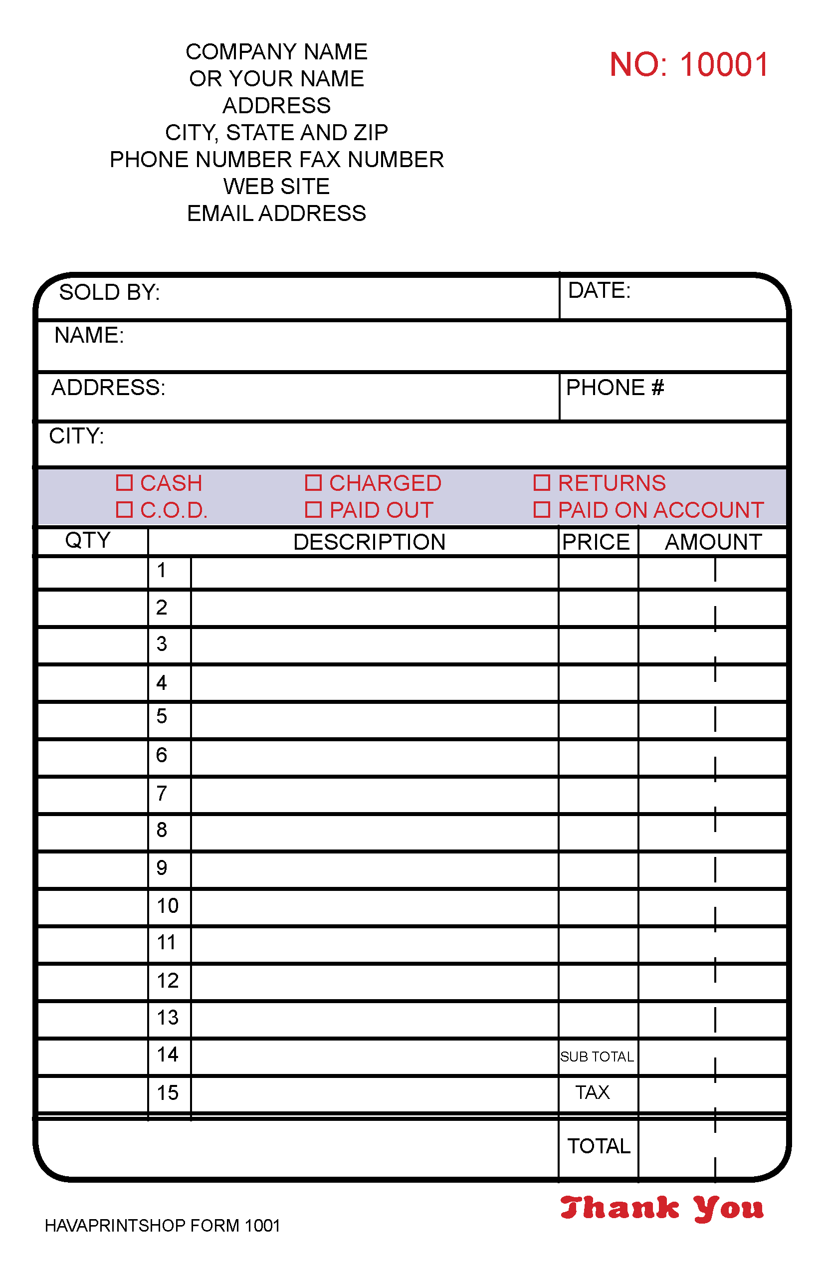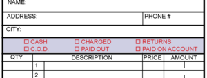 I will custom print your name and other information and add it to the form then I print and then put a perf at the top and bind it with a wrap around cover.