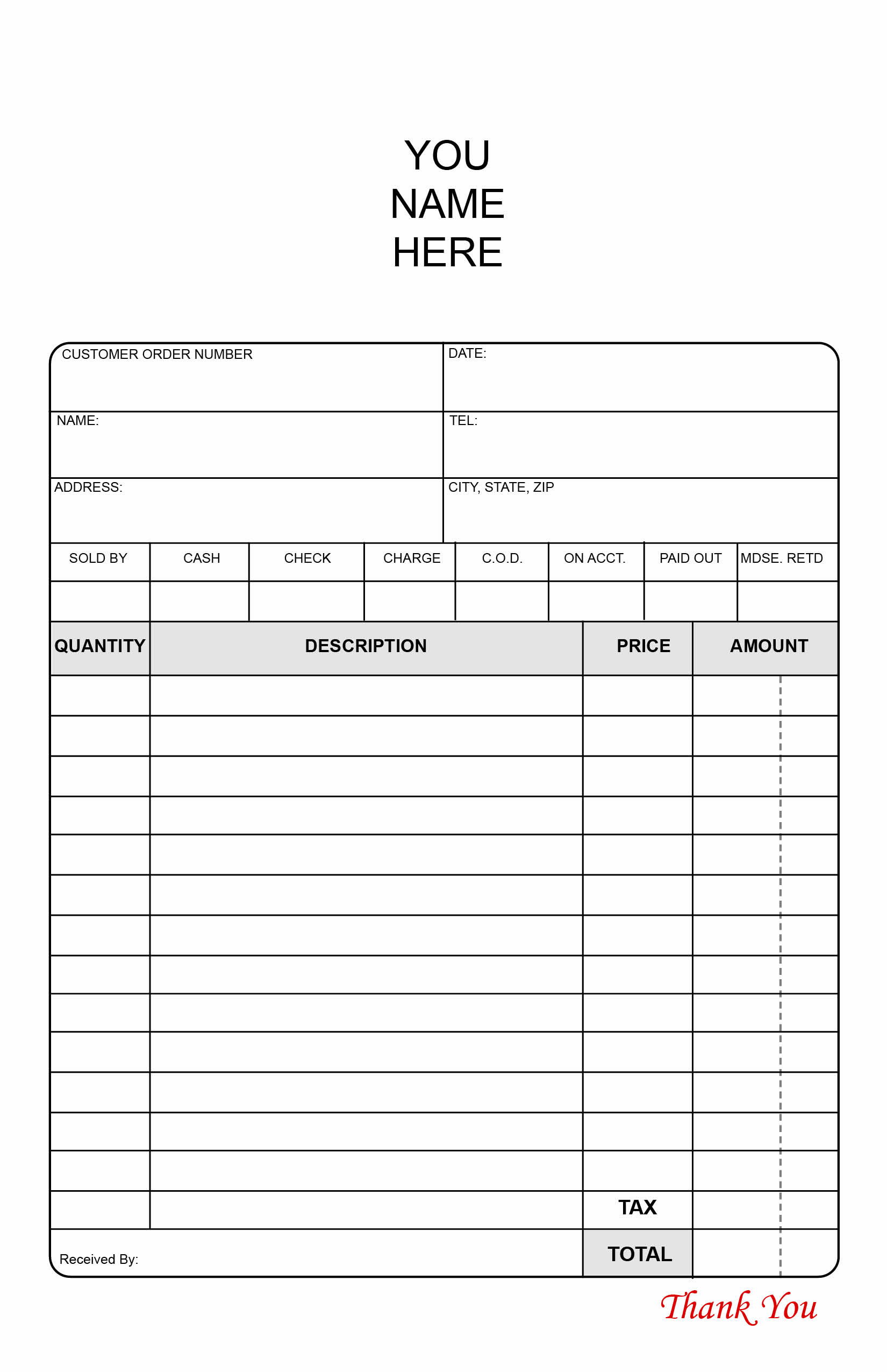 I will custom print your name and other information and add it to the form then I print and then put a perf at the top and bind it with a wrap around cover.