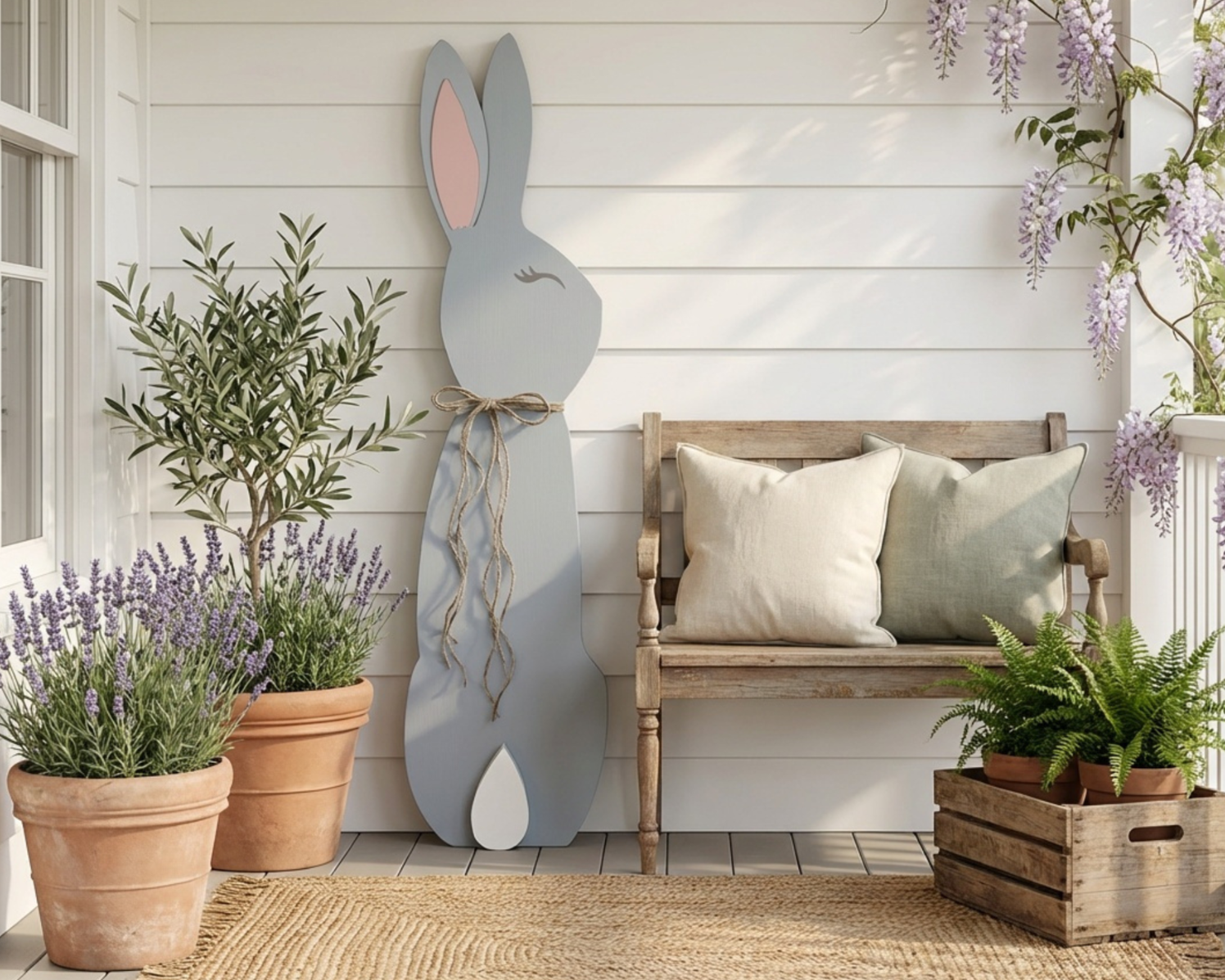 Bring timeless charm to your porch with this handcrafted rabbit porch leaner. Carefully cut from high-quality wood, this sitting rabbit features raised, multilayered details on its ear, eye, and tail, creating a beautifully sculpted, three-dimensional effect. With its peaceful, closed-eye expression, this design brings a sense of serenity, making it a perfect addition for spring, Easter, or year-round decor. Each piece is hand-painted, ensuring a unique, heirloom-quality finish that wonderfully complements any rustic, farmhouse, or cottage-style setting, while versatile enough to fit into literally any decor style! Sturdy and built to last, this artisanal wooden rabbit is a timeless statement piece for your covered porch, entryway, or indoor space.