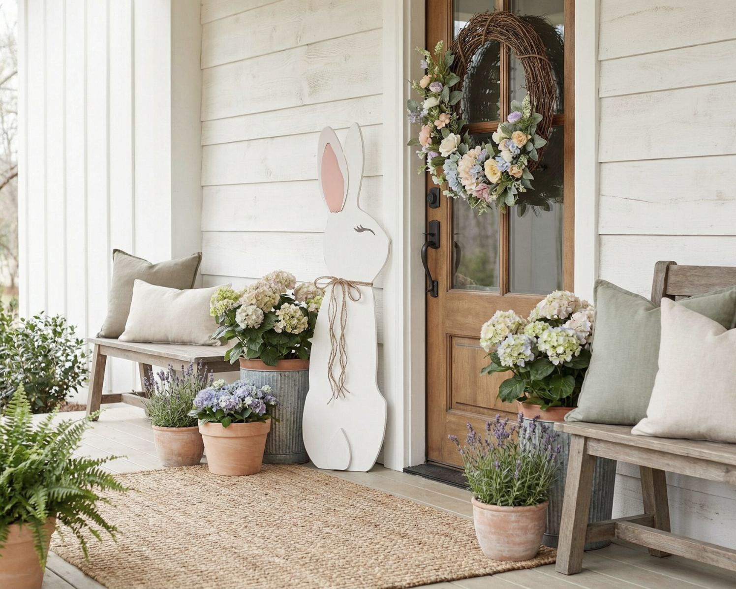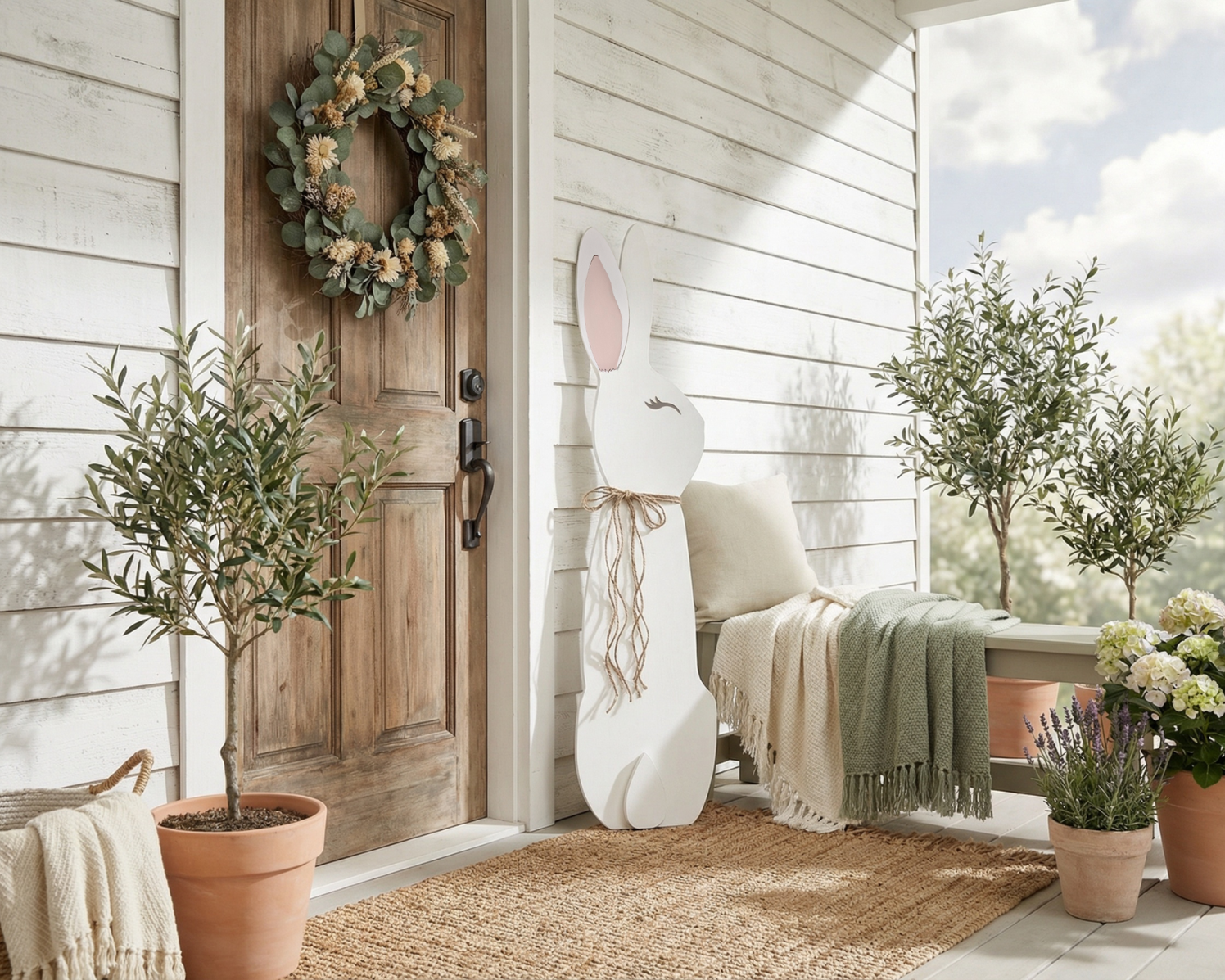Bring timeless charm to your porch with this handcrafted rabbit porch leaner. Carefully cut from high-quality wood, this sitting rabbit features raised, multilayered details on its ear, eye, and tail, creating a beautifully sculpted, three-dimensional effect. With its peaceful, closed-eye expression, this design brings a sense of serenity, making it a perfect addition for spring, Easter, or year-round decor. Each piece is hand-painted, ensuring a unique, heirloom-quality finish that wonderfully complements any rustic, farmhouse, or cottage-style setting, while versatile enough to fit into literally any decor style! Sturdy and built to last, this artisanal wooden rabbit is a timeless statement piece for your covered porch, entryway, or indoor space.