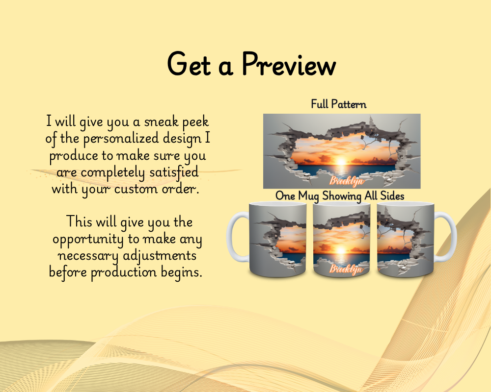 CUSTOM ORDERS / APPROVE YOUR DESIGN: I will send you a preview in 1-3 days for your reference. Feel free to make changes at that time! If you do not reply within the next 48 hours, we will consider the design approved and proceed with production. When you approve the preview, we will continue with the design process.
