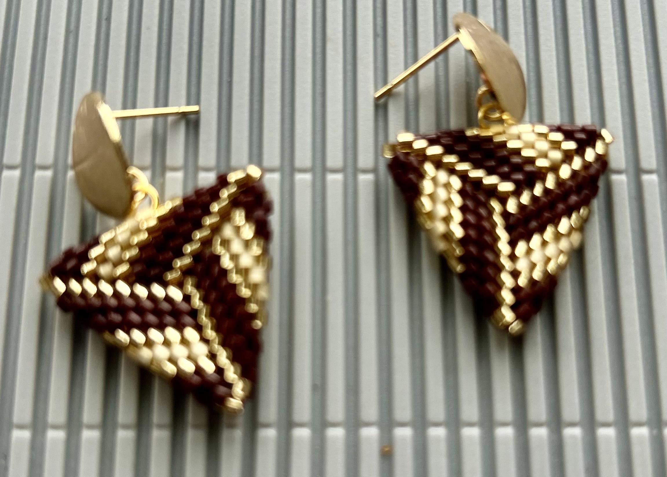 3D triangle delica beads earrings.