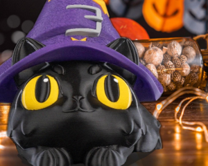Witch Cat Candy Dish – Halloween Black Cat Bowl with Wizard H...
