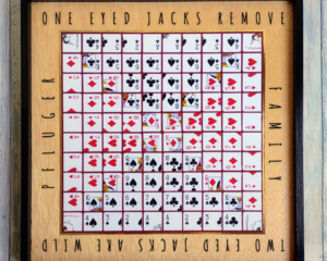 We are Chris and Carrie, small business owners in Amarillo, Texas! Chris and I hand make all our game boards, sometimes bringing in our kids to help us out with orders. Chris drills ( no laser, no drill press!) sands and stains each board. I get to paint the holes and any center design or artwork! We make a variety of classic, family games such as Wahoo, Parcheesi, One-Eyed Jack, Checkers, Marble Solitaire, Dominos, and more!