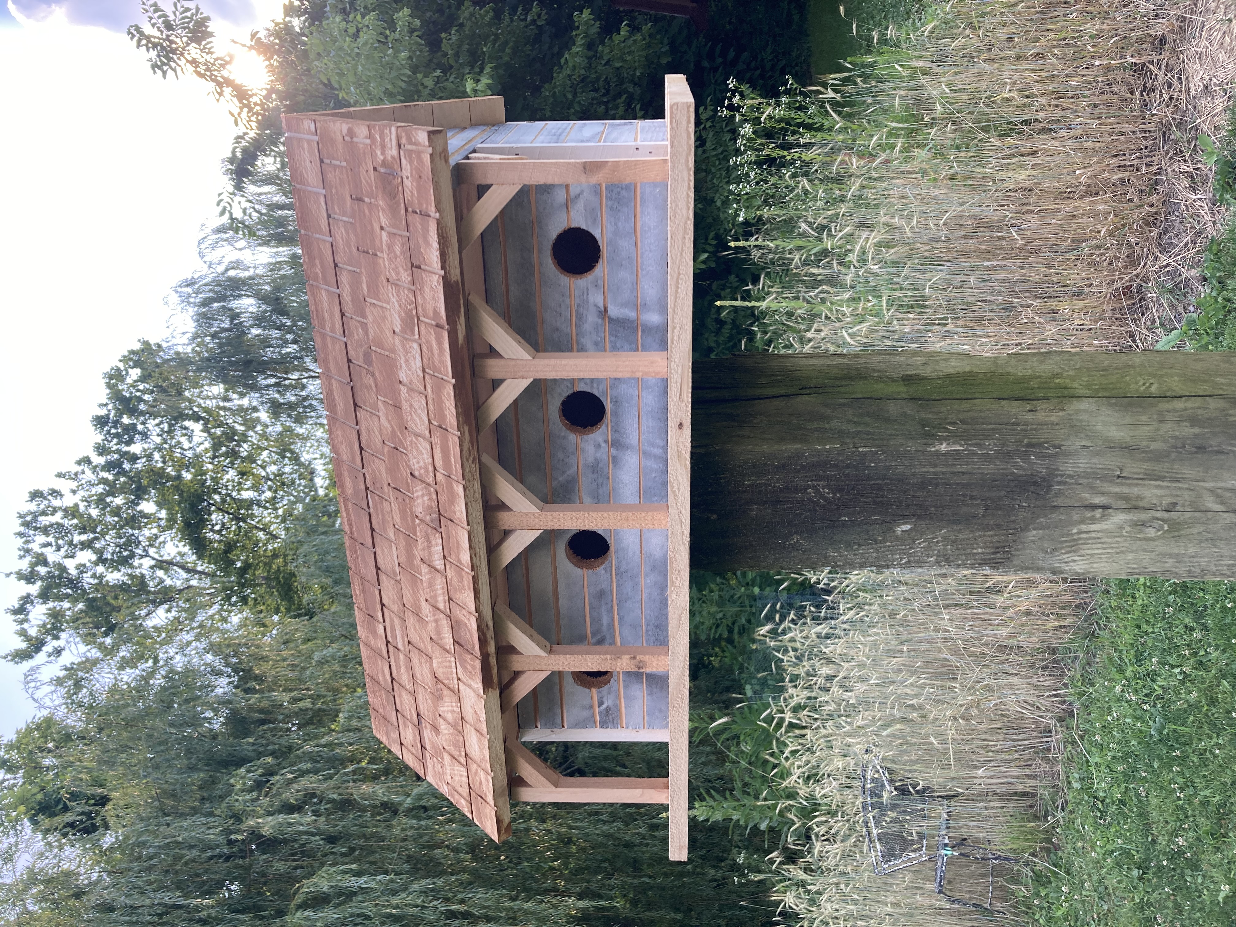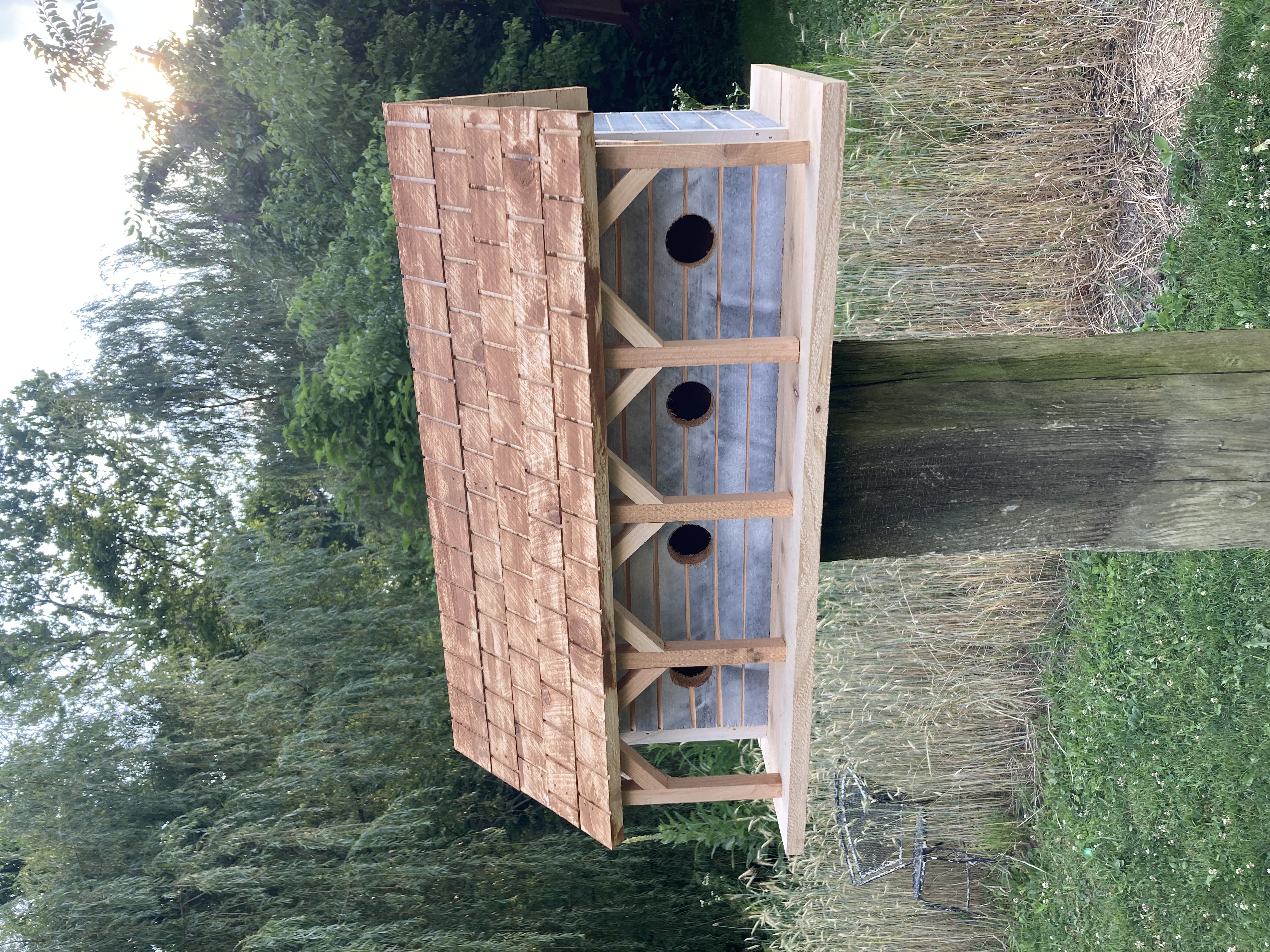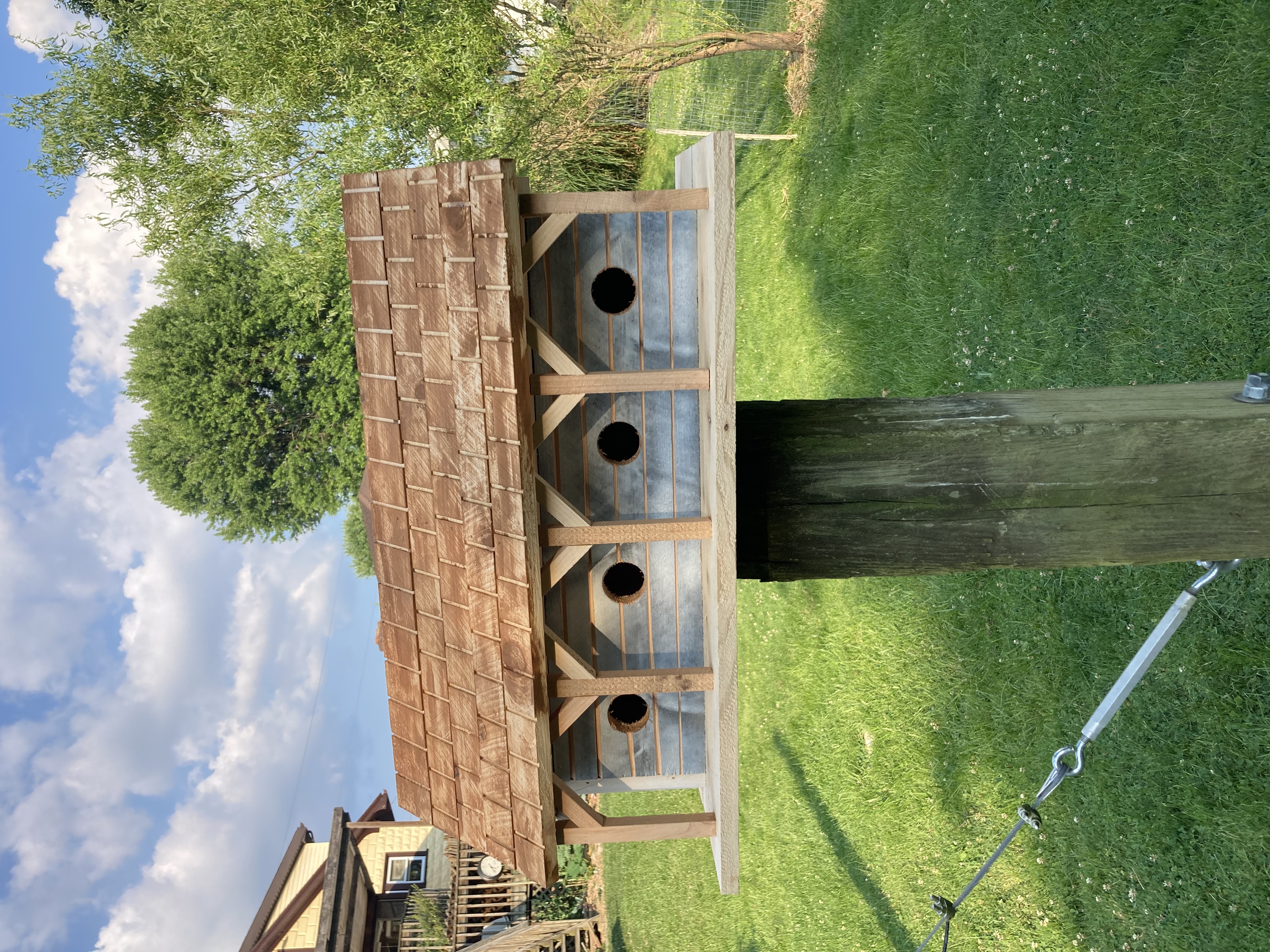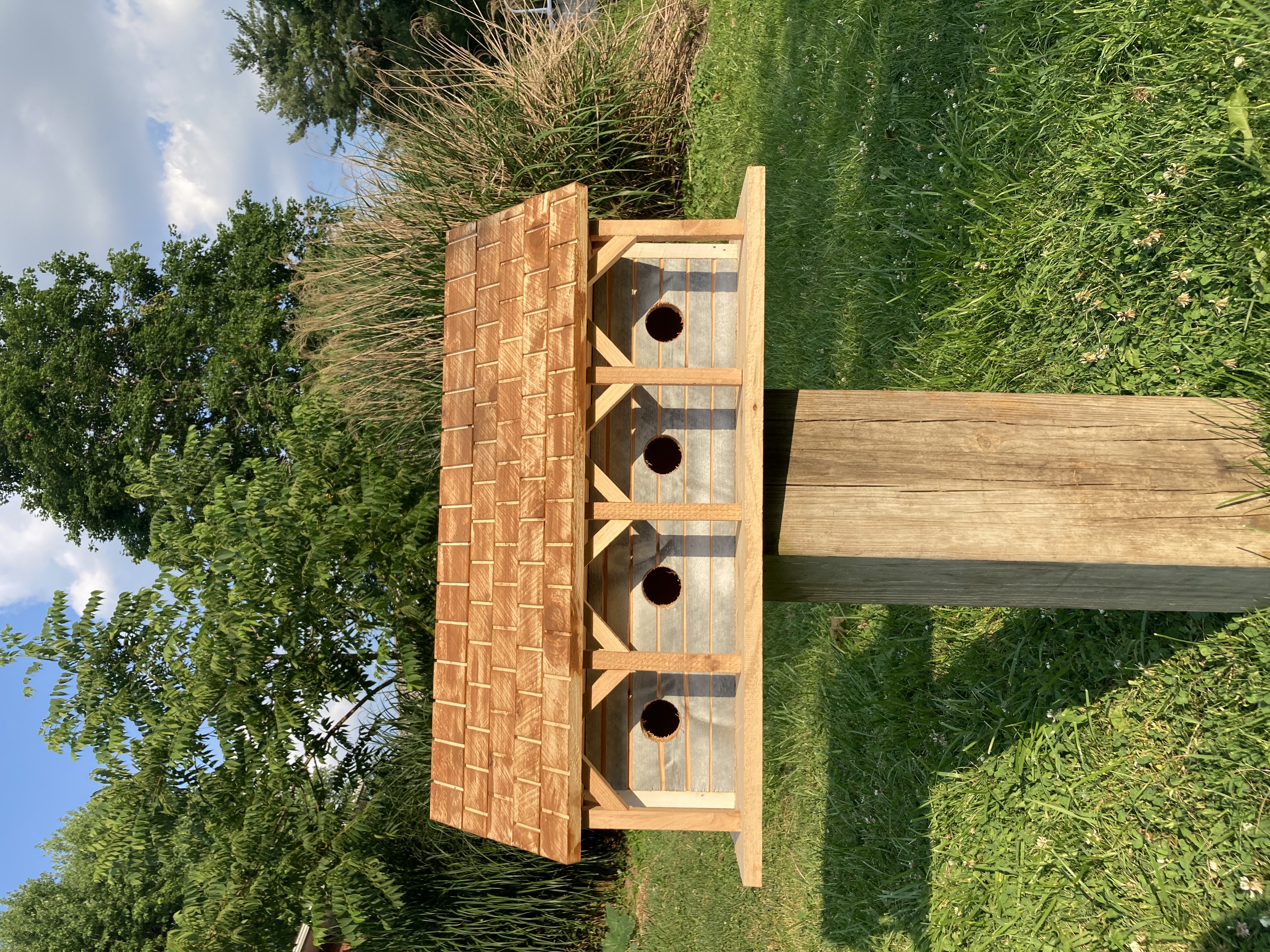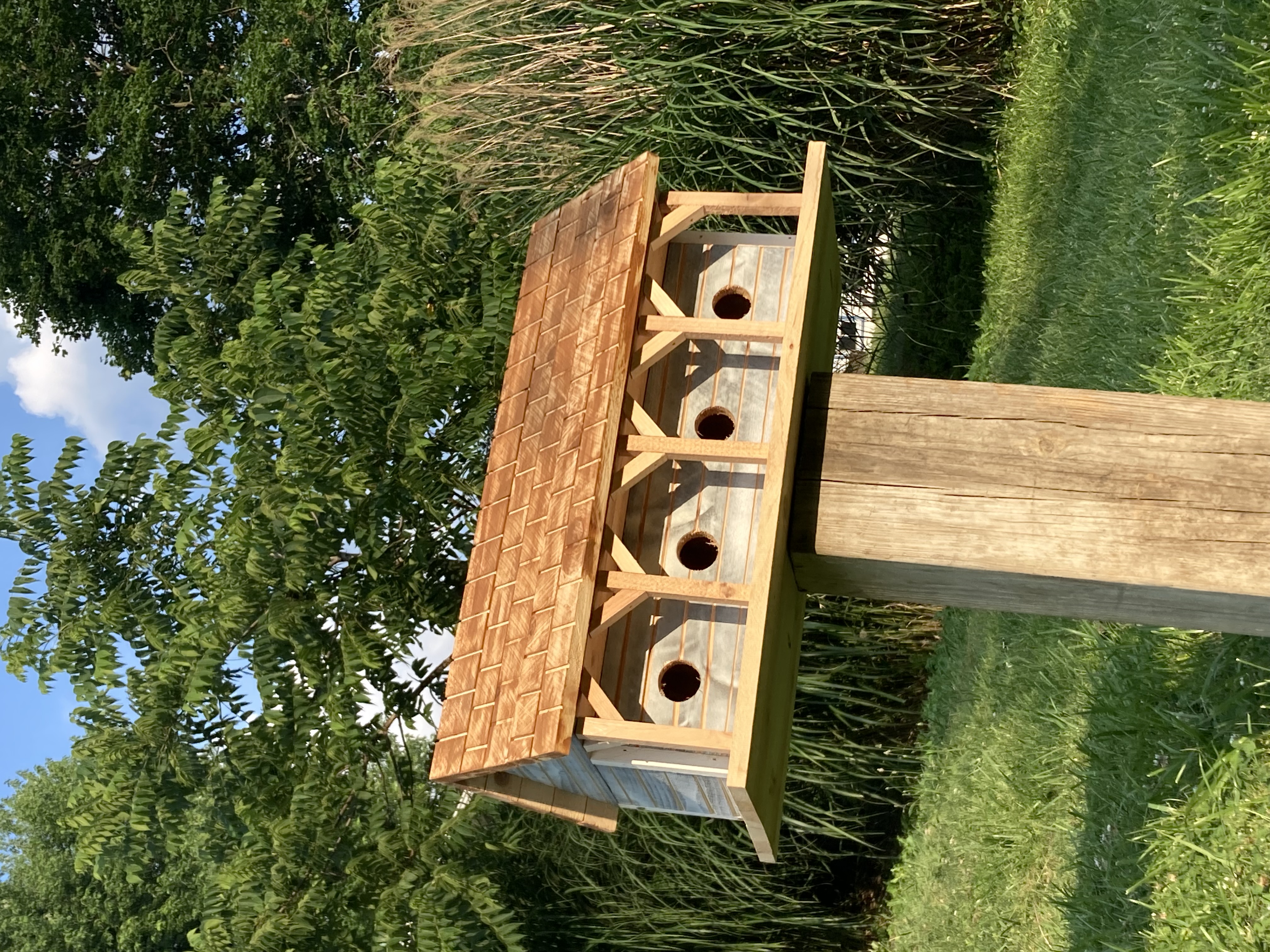 Introducing Mr. and Mrs. Martin’s brand new house…. PLUS…..their three neighbors. This wonderful whimsical rustic birdhouse is a perfect gift for that person who says they have everything. An accent for your garden, or a lovely fun piece of home decor. Made of cedar so it can withstand the elements. The back wall is easily removed for cleaning out last year‘s nest. Make sure you grab one or more of these for gifting and decorating
