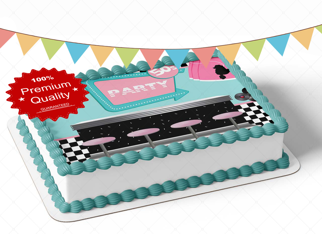 50s Birthday Party Restaurant Edible Image Themed Edible Birthday Party Cake Topper Sheet Edible Sticker Decal