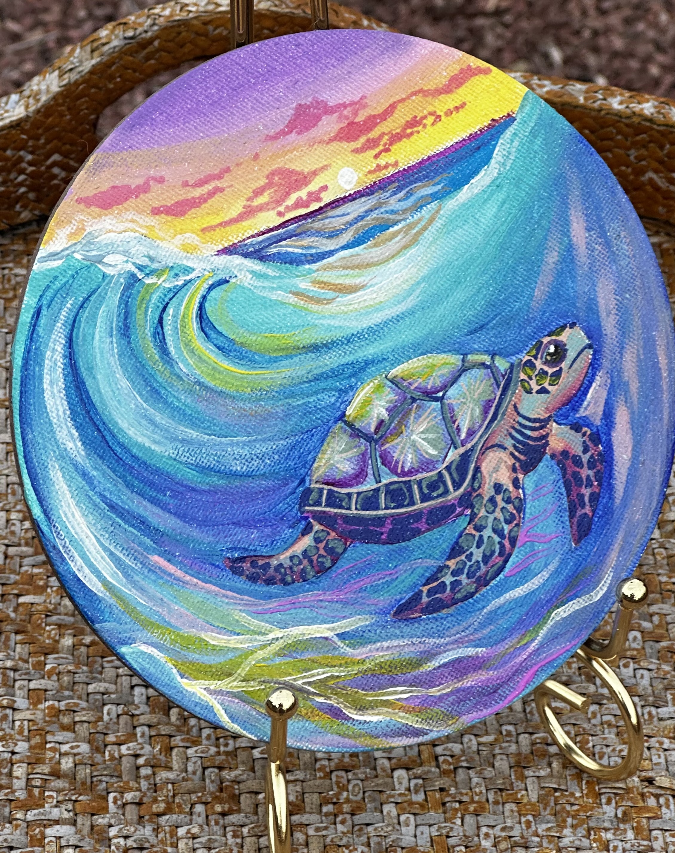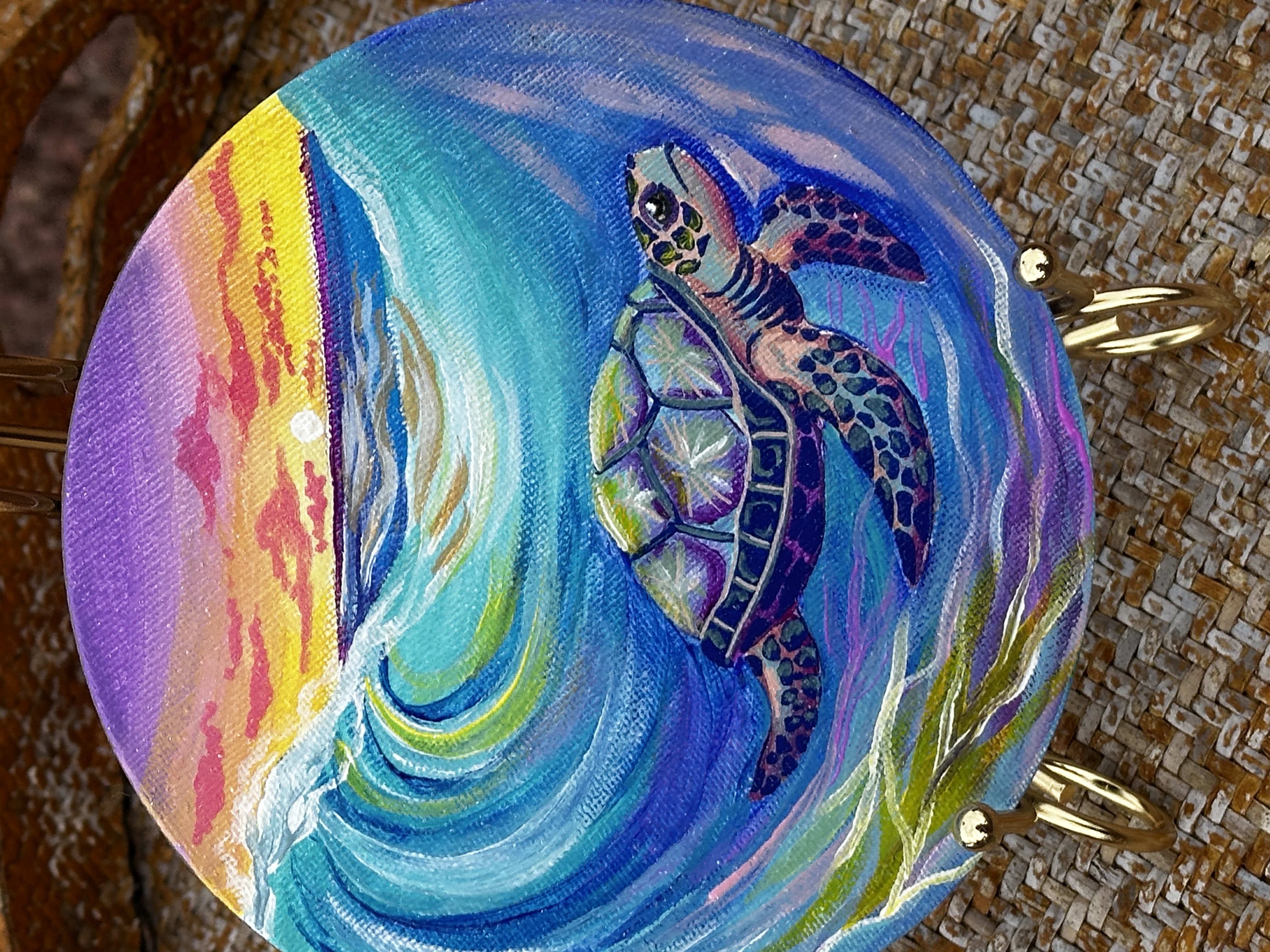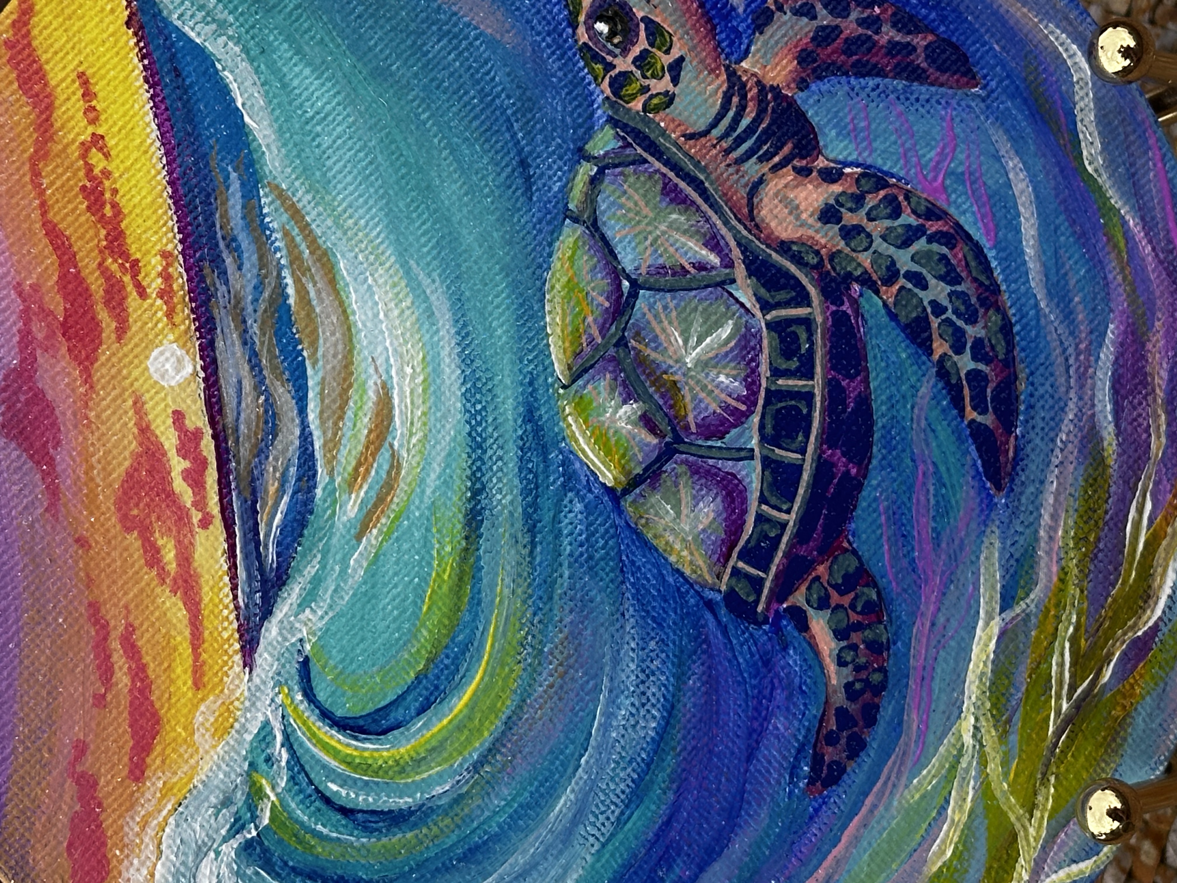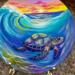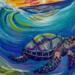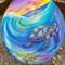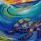 This is my original Handpainted magnet of a glowing, rainbow seaturtle and waves.