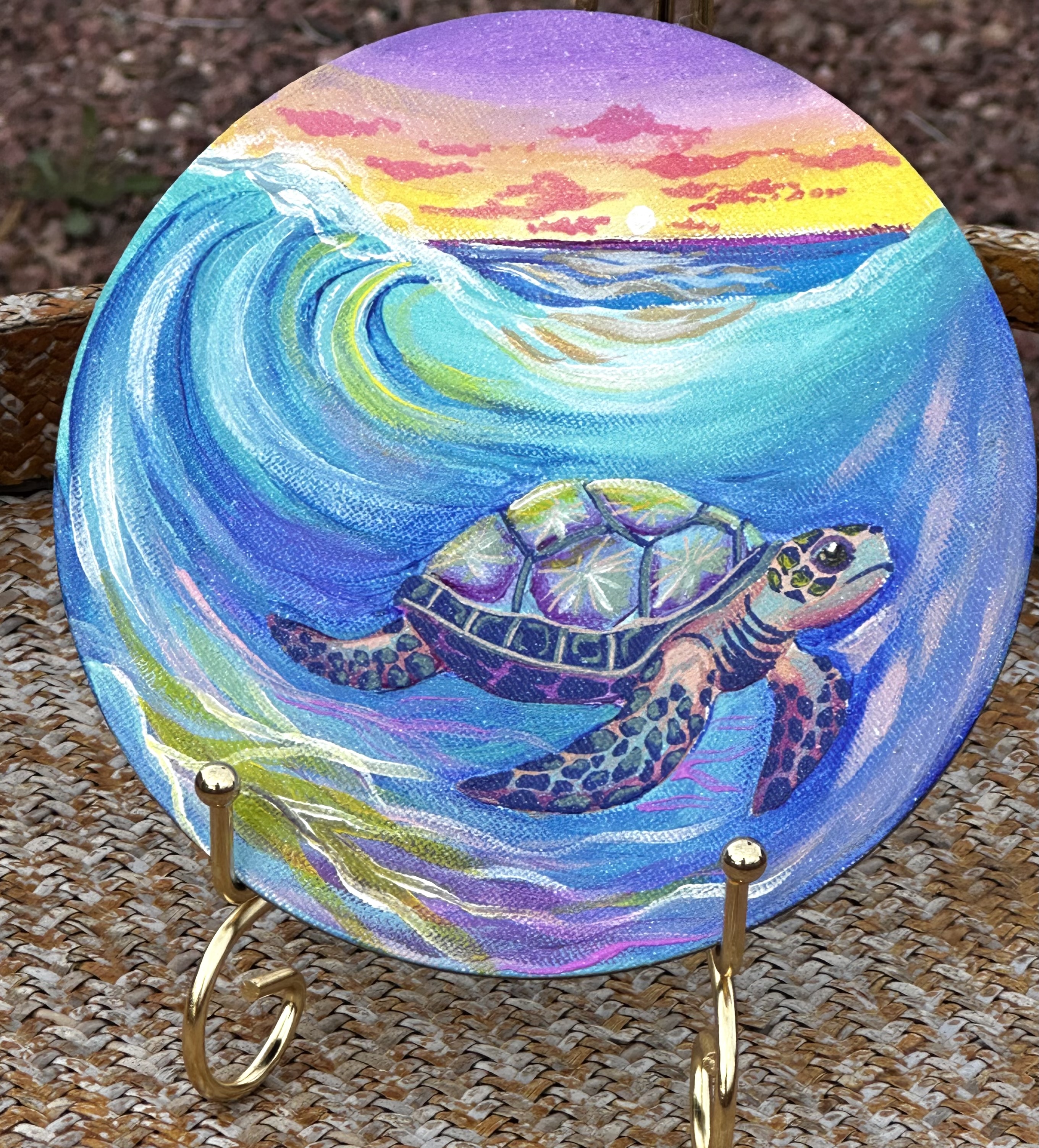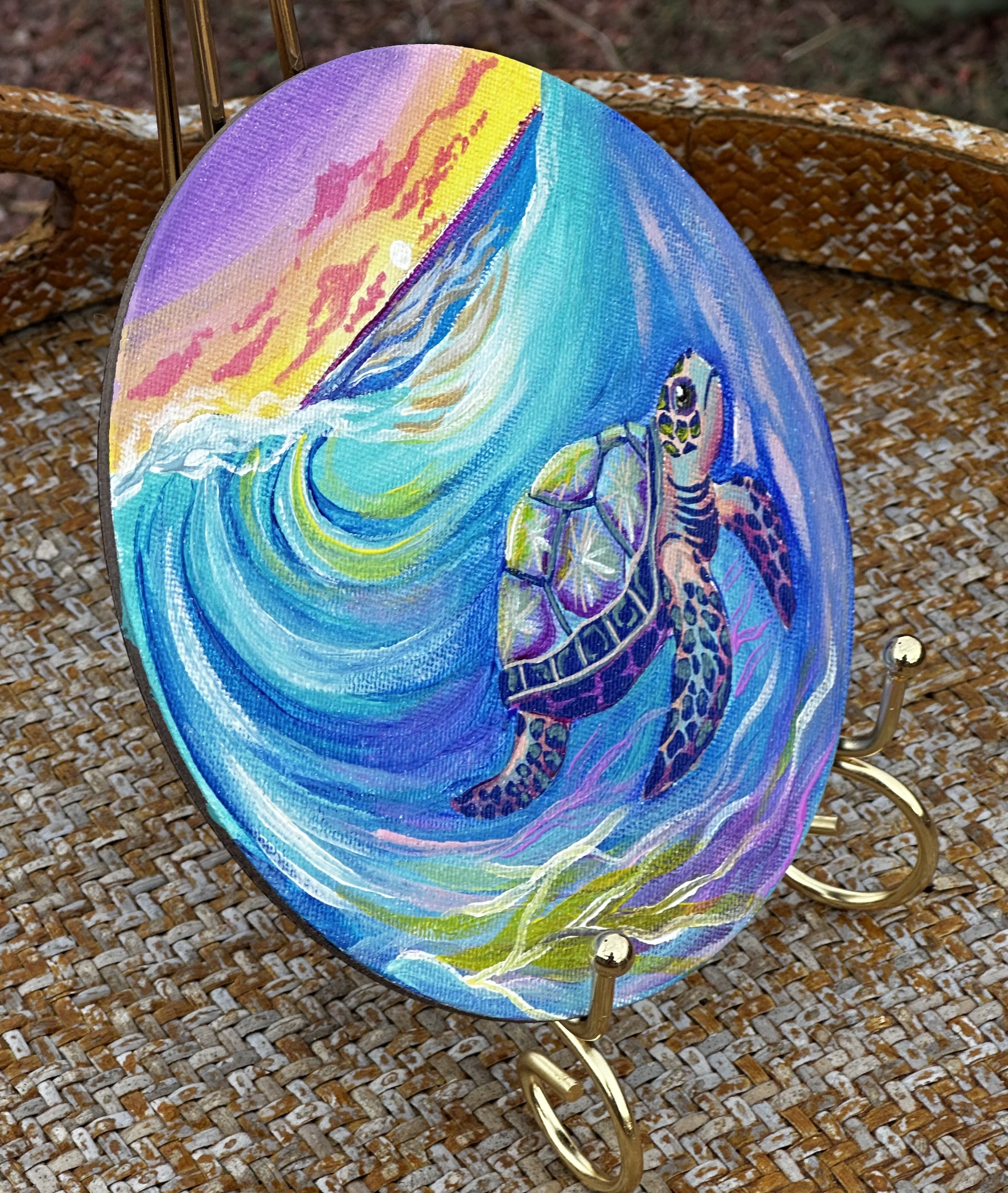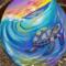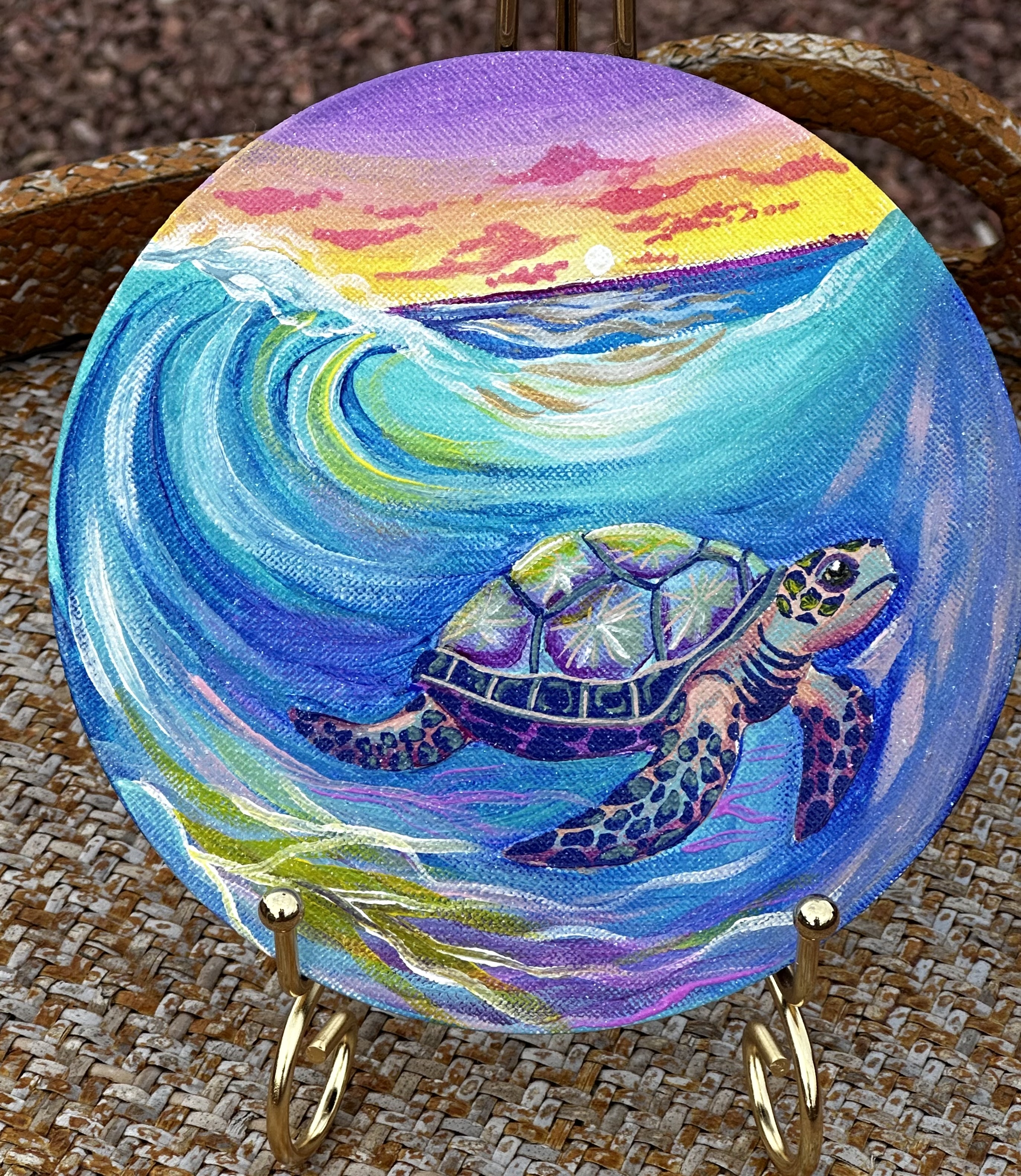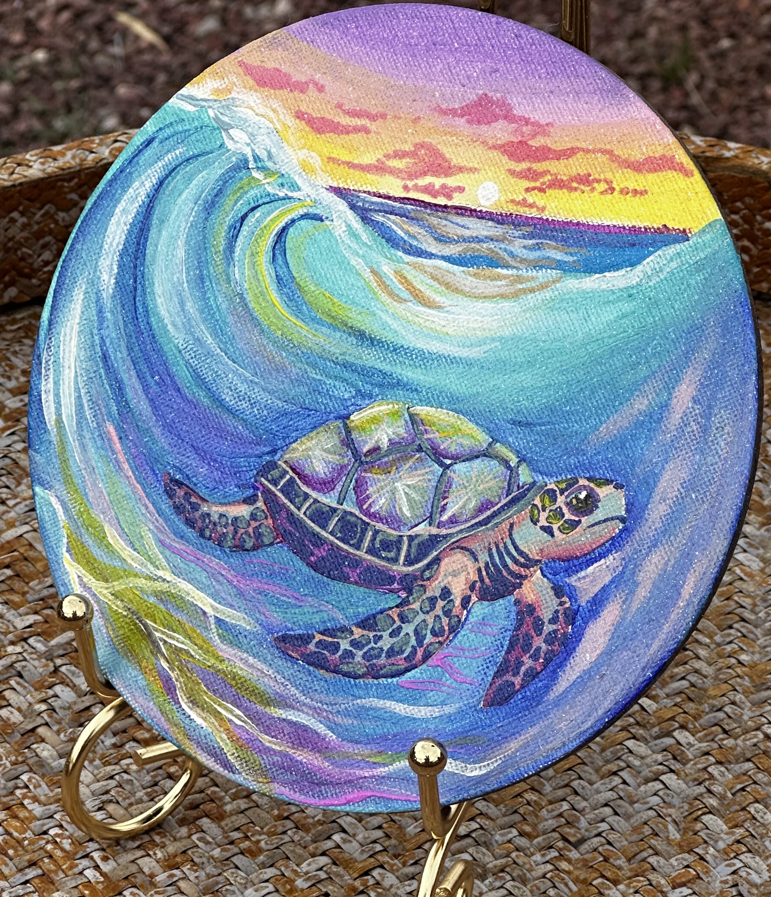 This is my original Handpainted magnet of a glowing, rainbow seaturtle and waves.