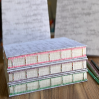This shop is all about creating and selling handmade journals and sketchbooks. I like using unique fabric and paper for the covers. I use traditional bookbinding methods for lay flat case binding and booklet making. I plan to add more types of binding as I continue on this journey.