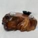 Detailed Description and Unique Features: This 150-year-old Douglas Fir tree root piece is one that was quite difficult to sand smoothly on the surface side due to various natural imperfections in the wood. Likely due to pre-sap formation insects one side has these amazingly uniform gouges while two of the other sides are much smoother and the fourth side looks more like bark that has petrified due to the sap. The stone is a Rainbow Moonstone that is known to provide balance, release tensions and soften emotions. It also helps keep harmony in relationships.(SCC Medium -1)