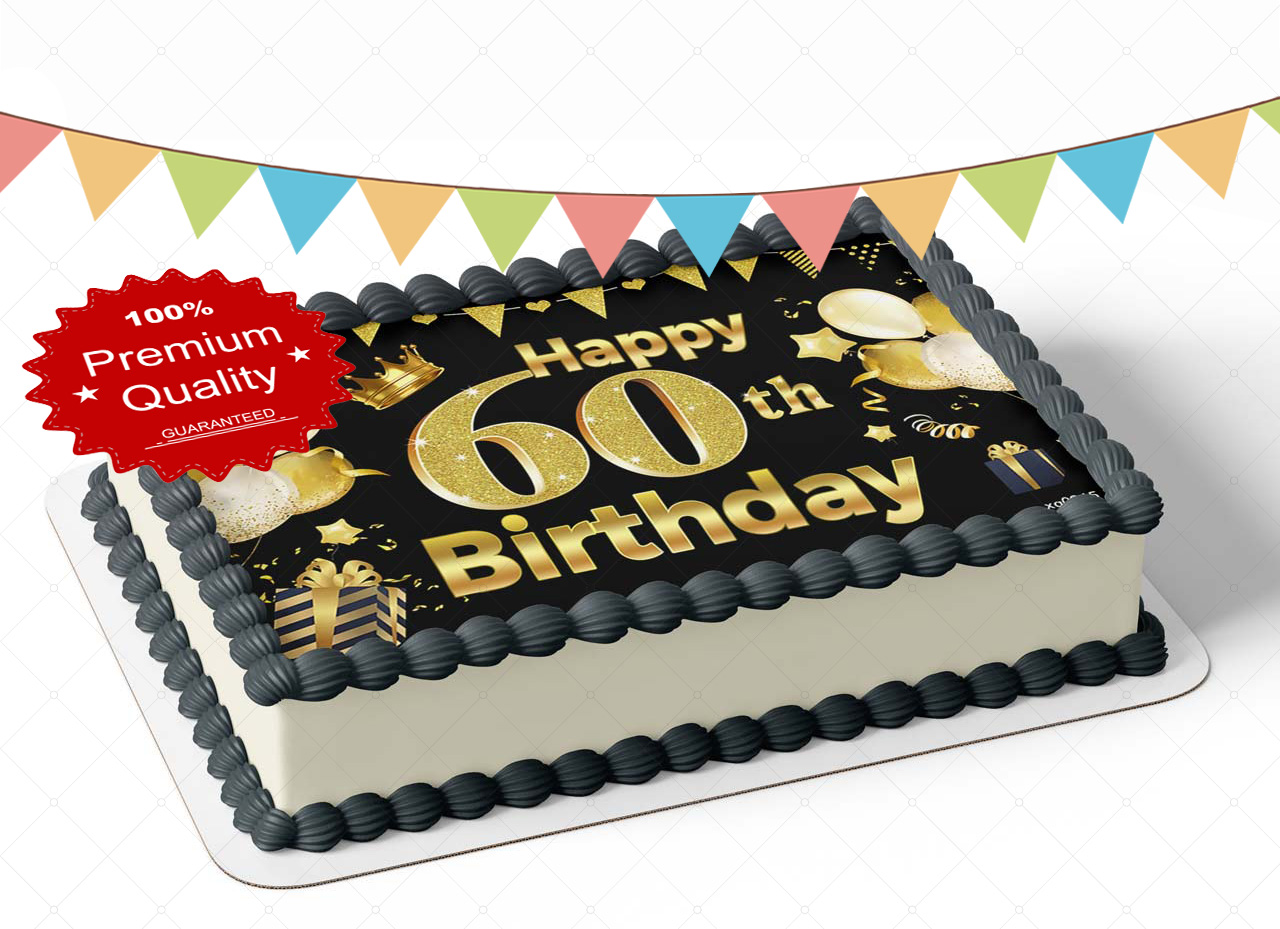 60th Luxury Gold Diamond Black Edible Image Themed Edible Birthday Party Cake Topper Sheet Edible Sticker Decal