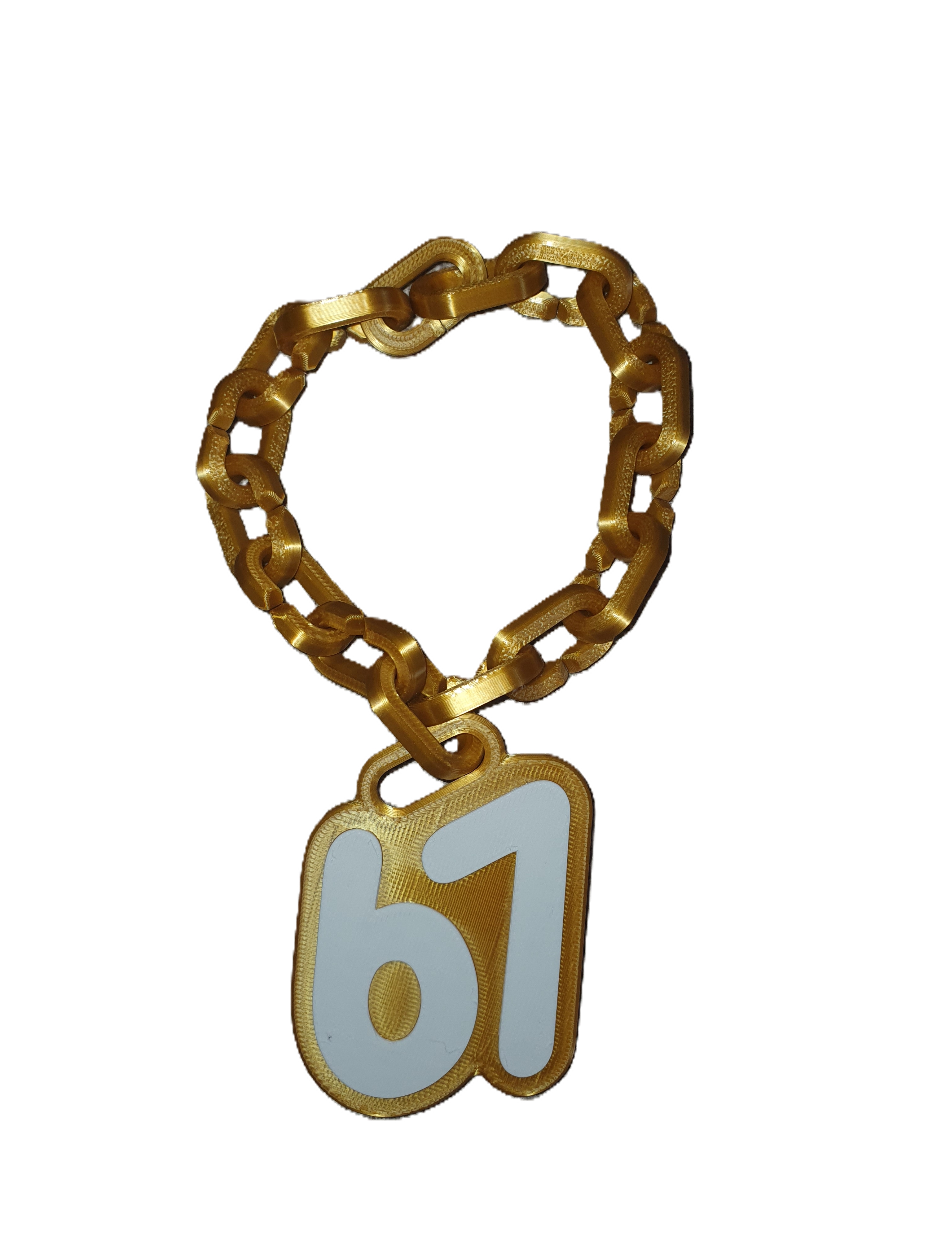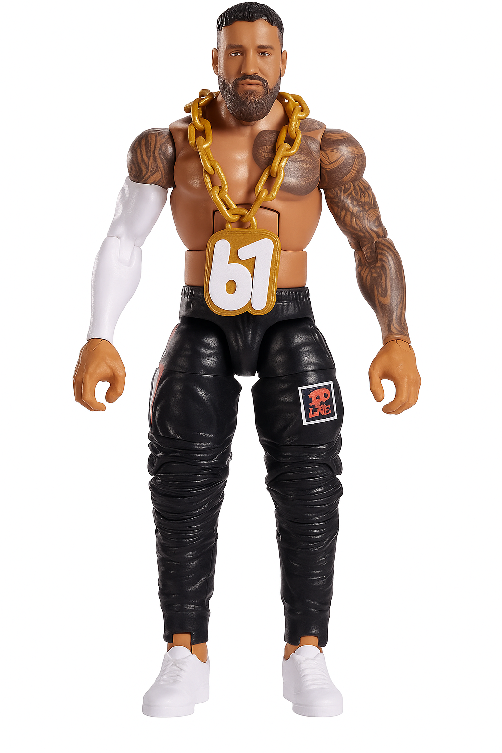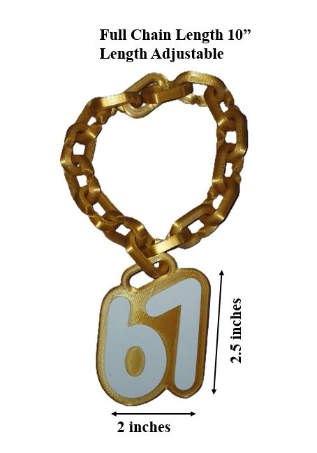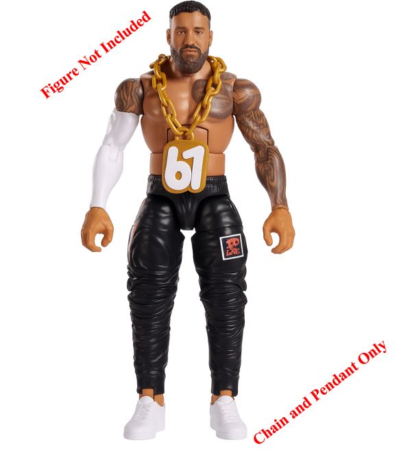 Description: Bold mini 67 hype necklace made for WWE and AEW action figures. Eye-catching pendant and chain elevate figure displays, entrances, and photos for collectors, customs, and wrestling fans. Wrestling figure not included - Jay Uso is shown for demonstration only. Links to chain can be removed or added for change of length.