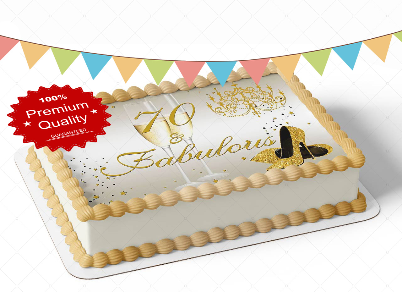 70 and Fabulous Gold Glitter Shoes Edible Image Themed Edible Birthday Party Cake Topper Sheet Edible Sticker Decal