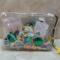 This bag is great for the Irish lass with earrings game pen Irish blessing lapel pin gnome key chain or use as a bag clip. all in a see thru bag with a rainbow with a bear dressed as Irish as can be with Happy St Patricks day sign