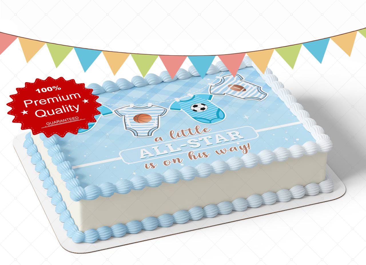A Little All Star Is On His Way Boy Baby Shower Edible Image Themed Edible Birthday Party Cake Topper Sheet Edible Sticker Decal