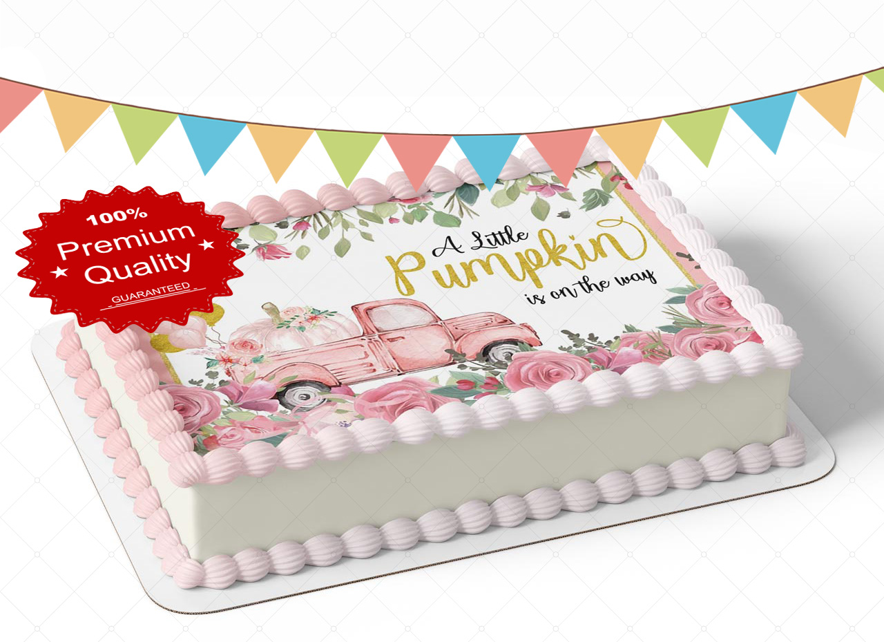 A Little Pumpkin Is On The Way Girl Edible Image Themed Edible Birthday Party Cake Topper Sheet Edible Sticker Decal