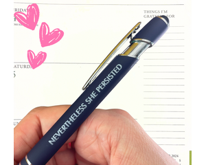 Twist open/closed Stylus end means cleaner screens! Clip allows you to wear this pen as a fancy accessory Black ink inside