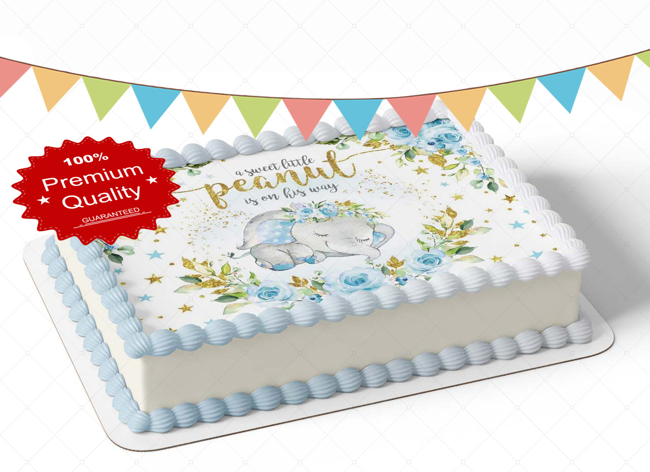 A Sweet Little Peanut Is On His Way Baby Boy Elephant Edible Image Themed Edible Birthday Party Cake Topper Sheet Edible Sticker Decal