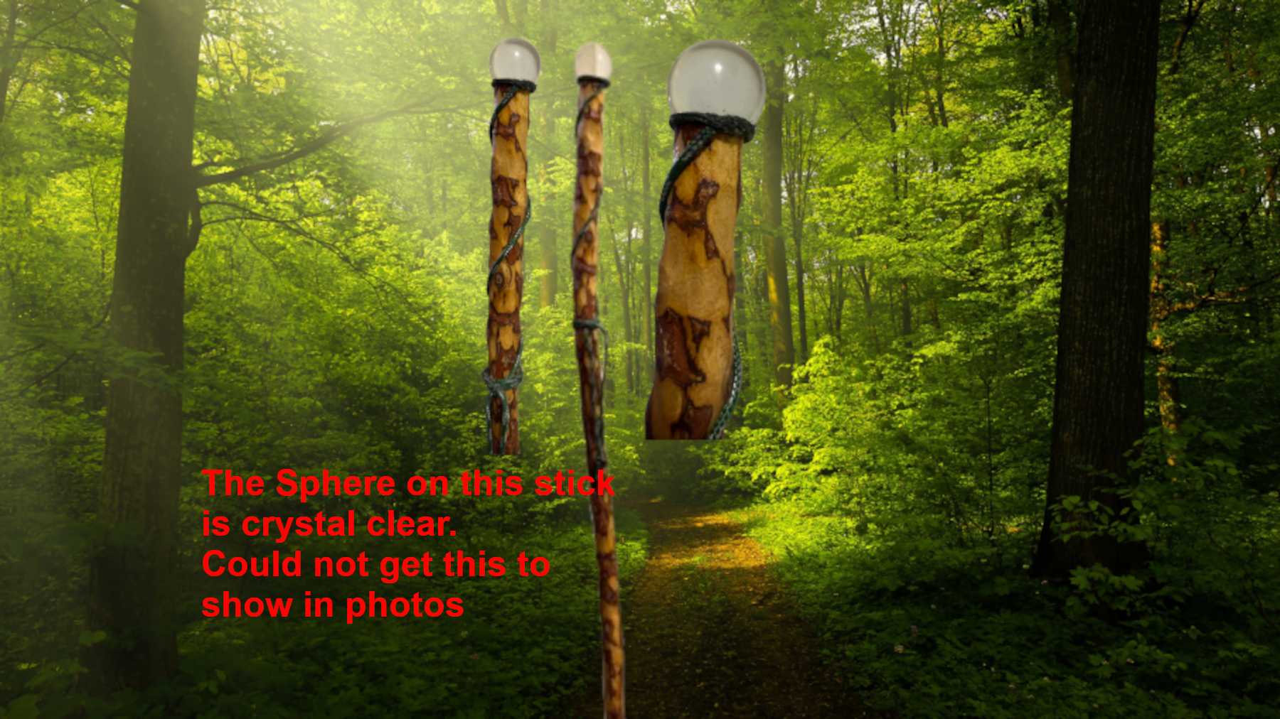 This distinctive walking stick features a crystal-clear resin sphere atop, capturing light beautifully and enhancing its natural elegance. Named for the unique Palomino patterns of its inner bark, this piece celebrates the beauty of nature’s design, making it as much a work of art as a functional walking aid.