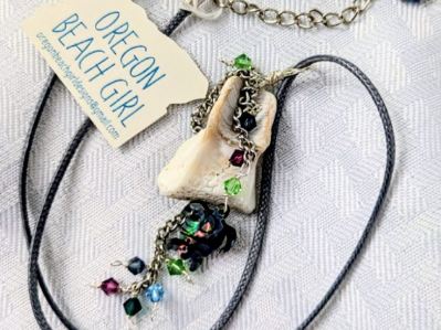 Oregon Beach Girl: Here I create beach themed necklaces and earrings. I make necklaces from seashells that I collect during my beach walks and adorn them with charms, semi-precious stones, freshwater pearls and Swarovski Crystal. I also wire wrap agates and rocks that I find on my local beaches. My inspiration comes from my meditative time walking along the shore. Every shell and every rock has a story to tell. My job as a designer is to be a good steward of that story and bring out the very best of each piece.