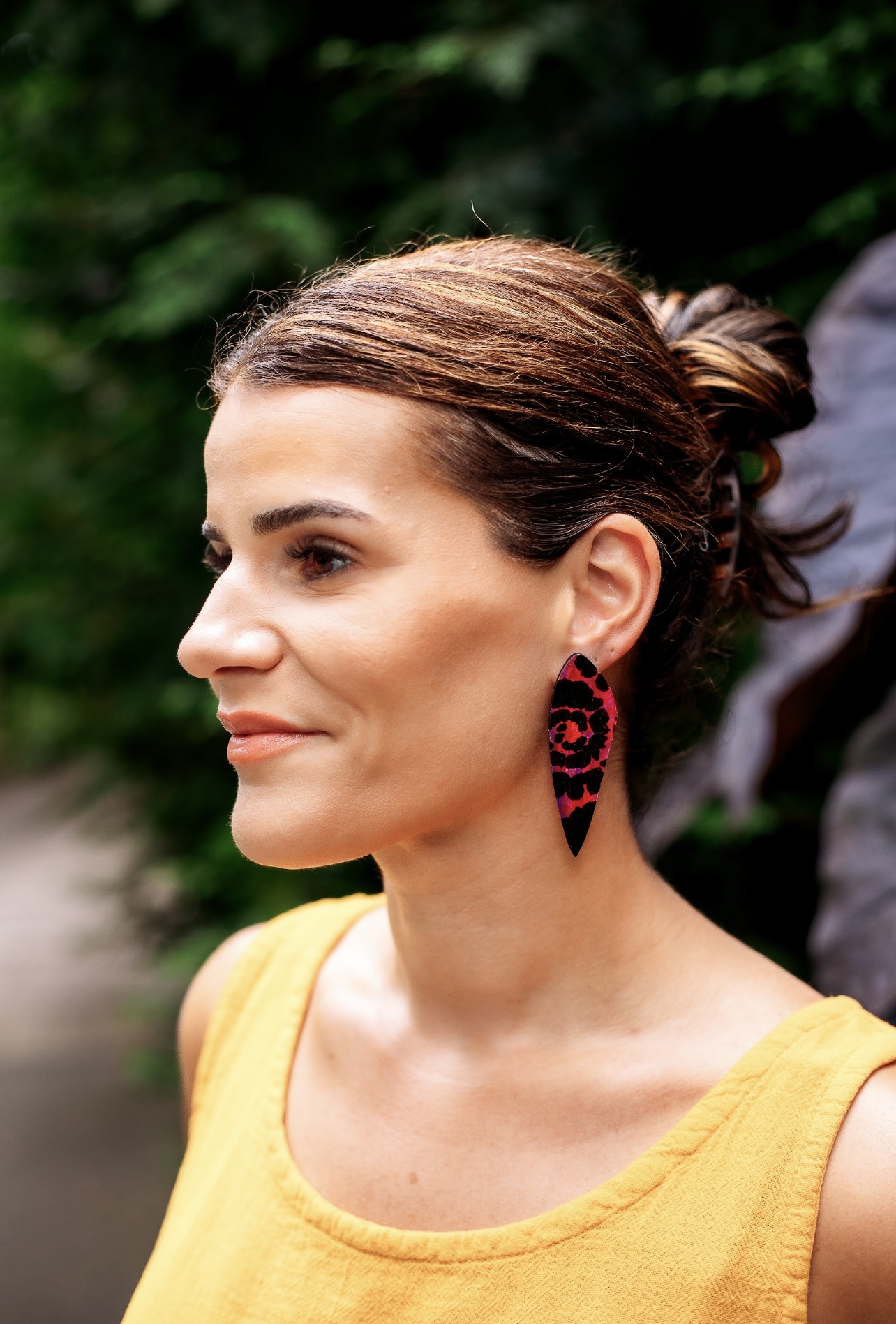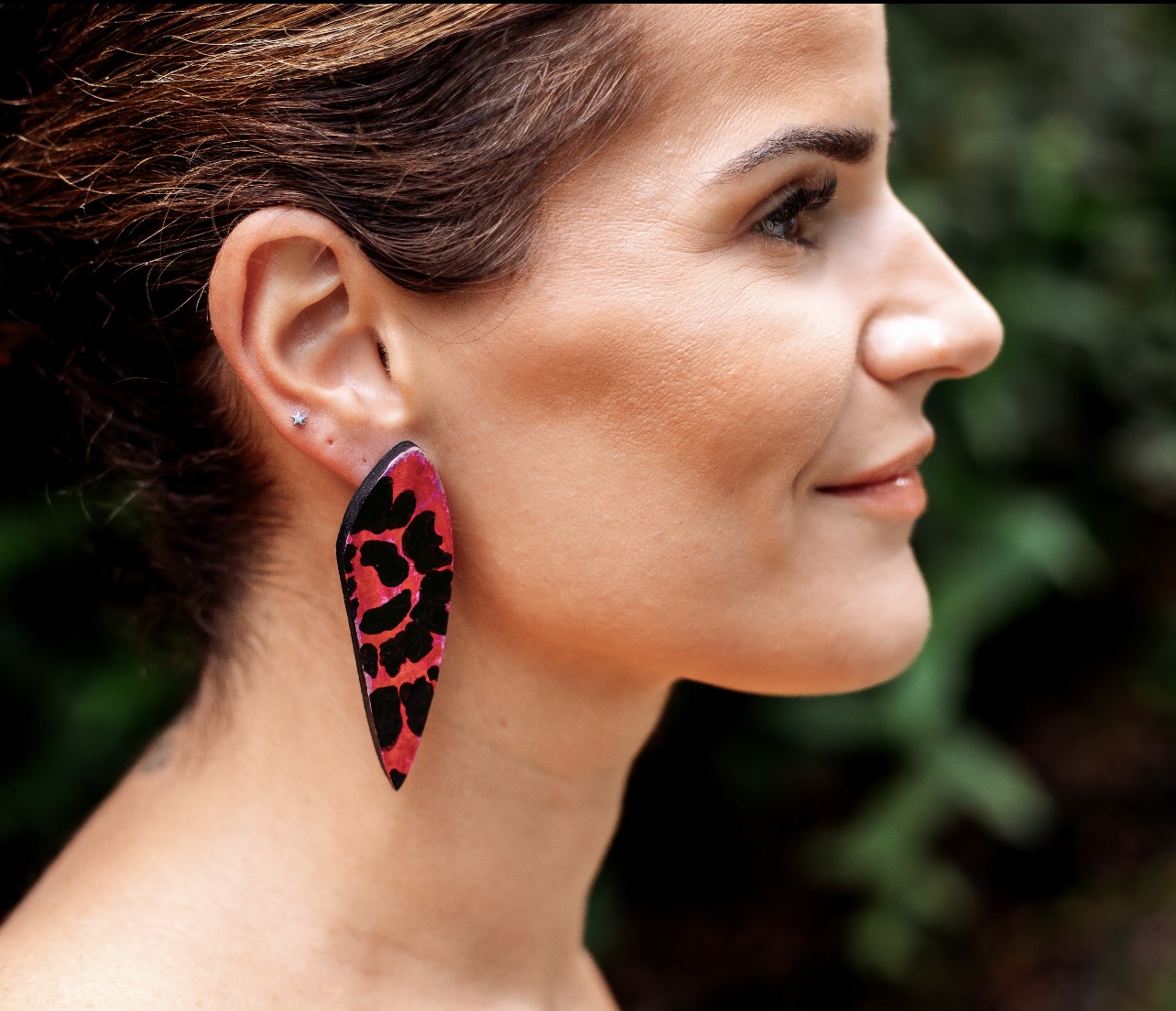 Painted wooden earrings with nickel free posts.