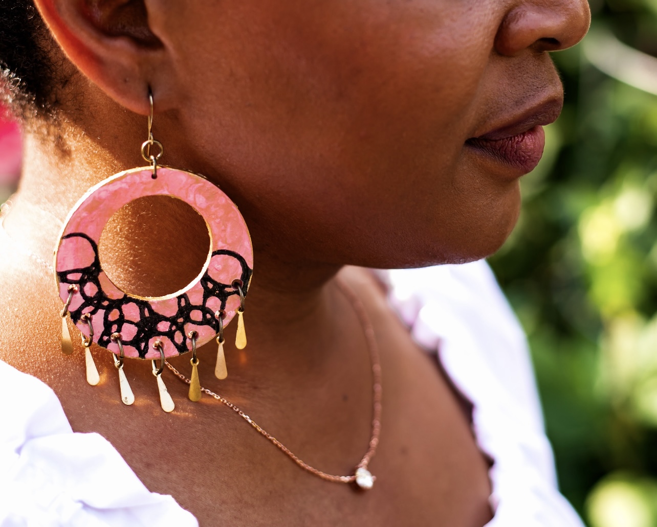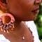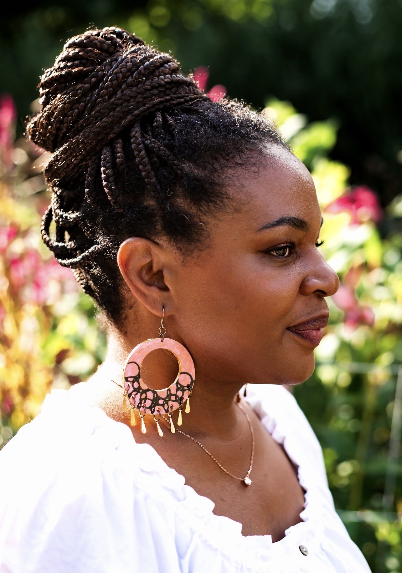 This unique pair of wooden earrings is truly one of a kind! When painting these hoops, I drew inspiration from abstract patterns , as well as my love for the paint pouring technique. If you love statement jewelry, then these are the earrings for you! Measurements: approximately 4” long