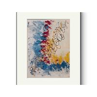 Paintings on watercolor or acrylic paper come framed in a simple black frame, with 2" matting.