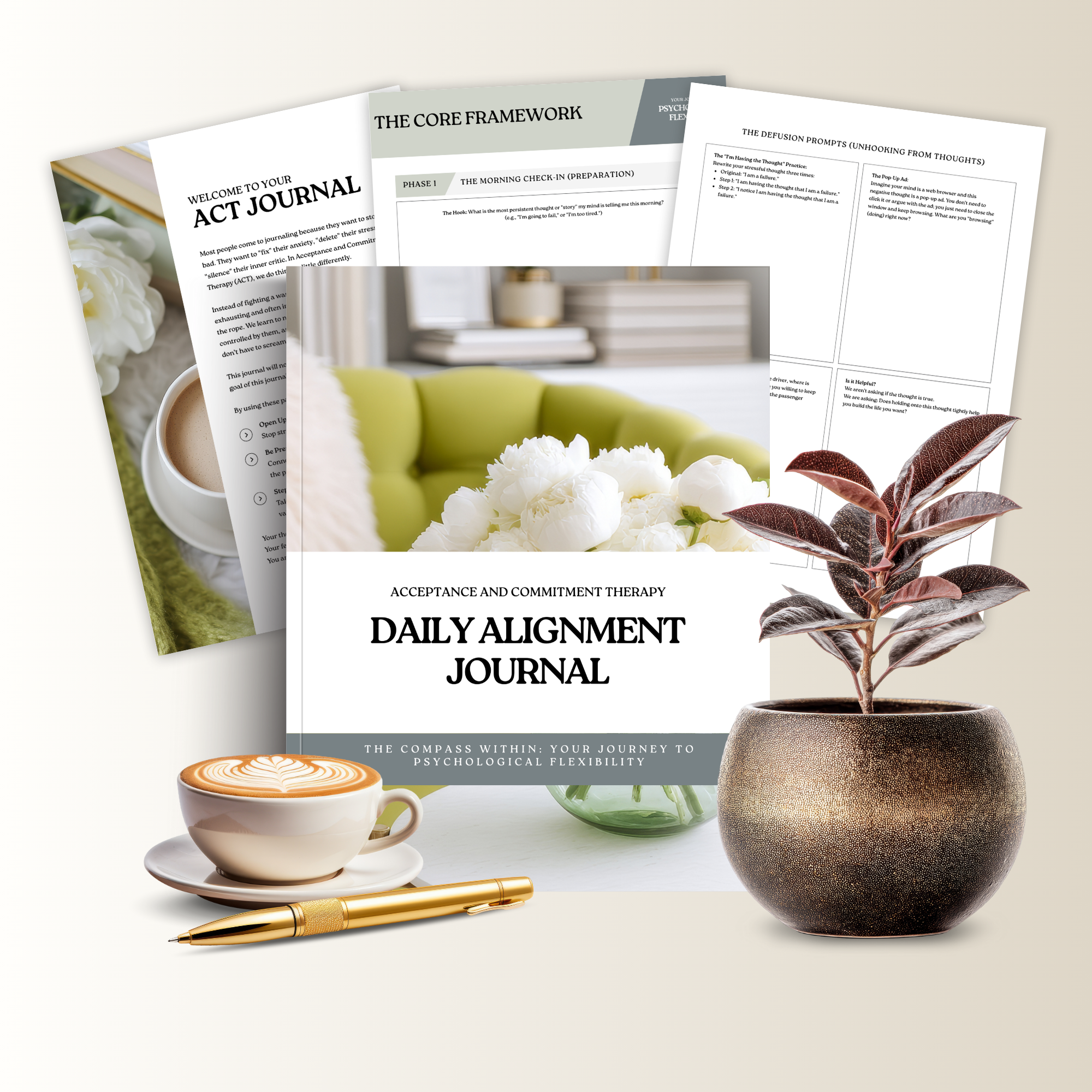 This Acceptance and Commitment Therapy (ACT) Daily Alignment Journal is a structured, therapist-informed resource designed to support clients in building psychological flexibility through consistent, values-based reflection.