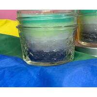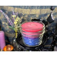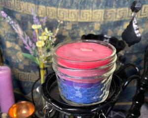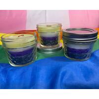 The recycled wax was then combined with essential oils for fragrance and makeup grade mica powder dyes for color before being hand poured one layer at a time into the mason jars.