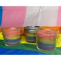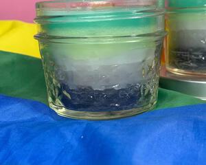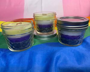Asexual "Ace" Pride mason jar candle. Scented using coffee and geranium essential oils - smells like drinking fresh coffee in the garden on a peaceful morning. Wooden bamboo wick.